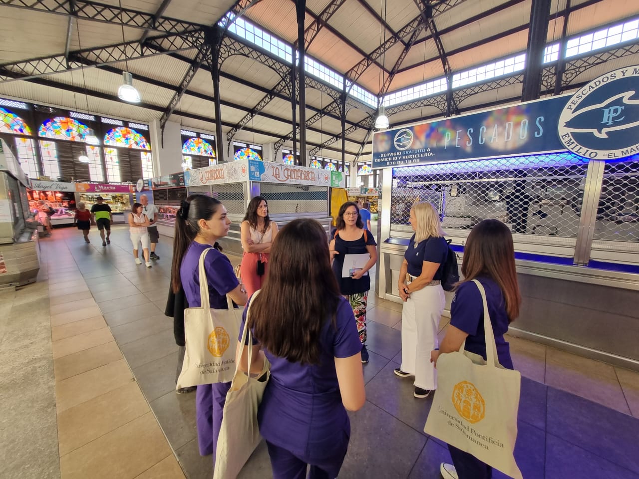 Además, han podido explorar la variedad de alimentos que ofrecen los diferentes mercados locales de la ciudad (Mercado Central y Mercado de San Juan), en los que los participantes pudieron conocer los alimentos típicos de la cultura salmantina, degustar productos locales y realizar un análisis detallado del entorno de distribución alimentaria.