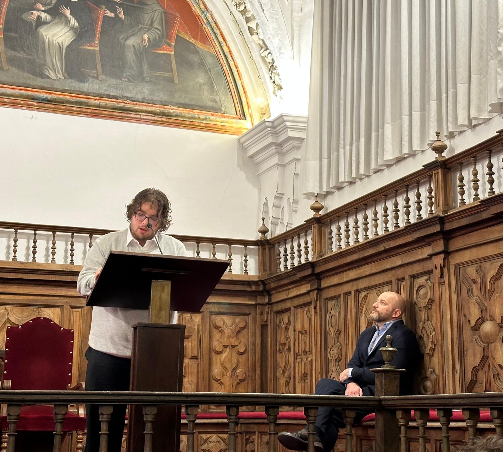 Por su parte, el premiado, cuya presentación previa fue realizado por el alumno con el mejor expediente académico de la Facultad, Andrés López Dueñas, ha comenzado indicando que “hay lugares que se convierten en la ‘casa’ de uno y este es uno de ellos. Se supone que cuando recibes un premio es porque has aprendido algo, sin embargo, tan solo acumulo dudas y pocas certezas”.