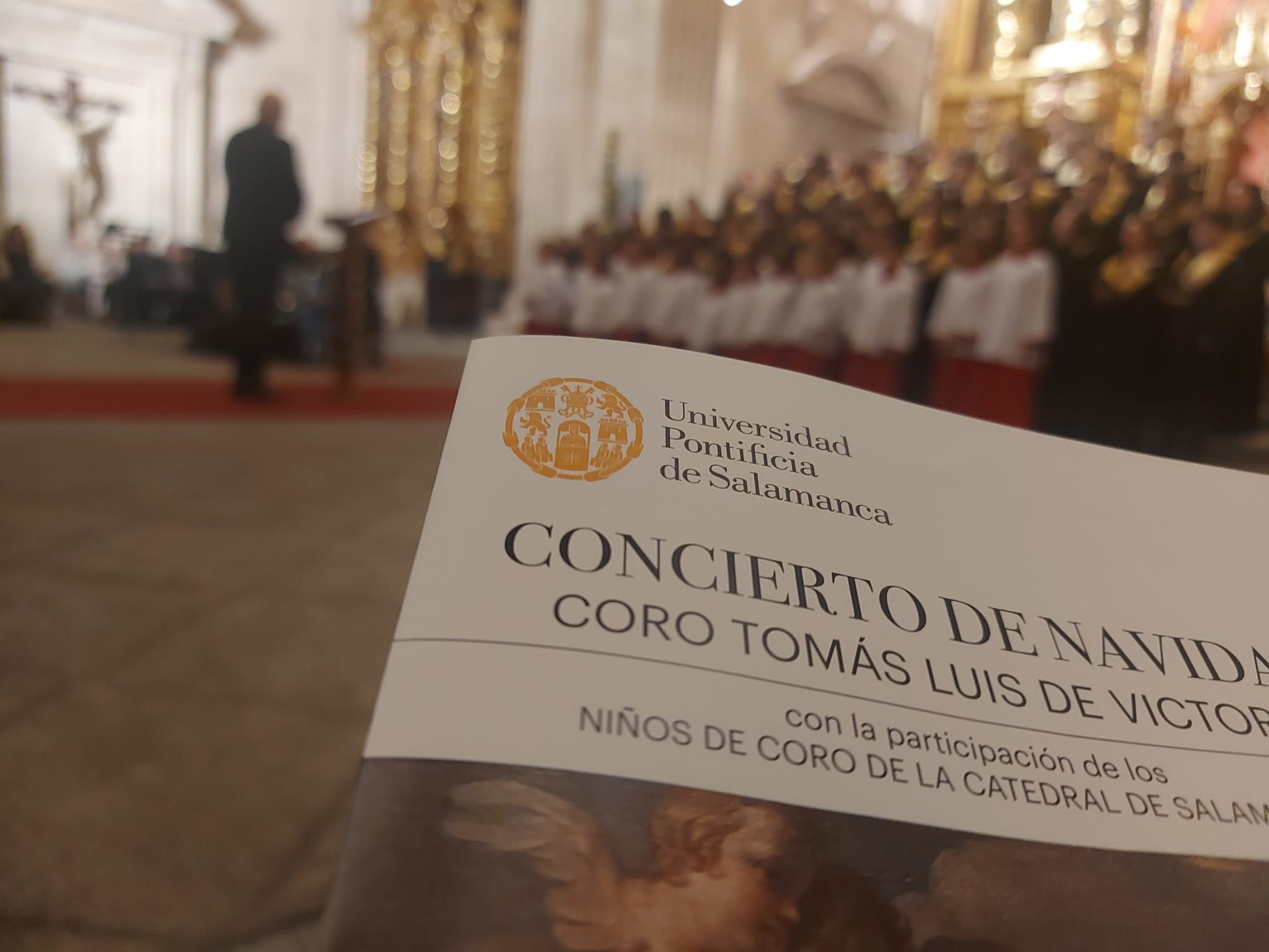 El Coro Tomás Luis de Victoria, de la Universidad Pontificia de Salamanca, ofreció el sábado el tradicional Concierto de Navidad, en esta ocasión acompañado por los niños del Coro de la Catedral de Salamanca, que sumaron sus voces en los últimos villancicos del recital.