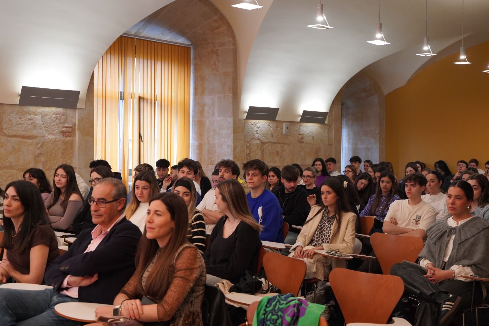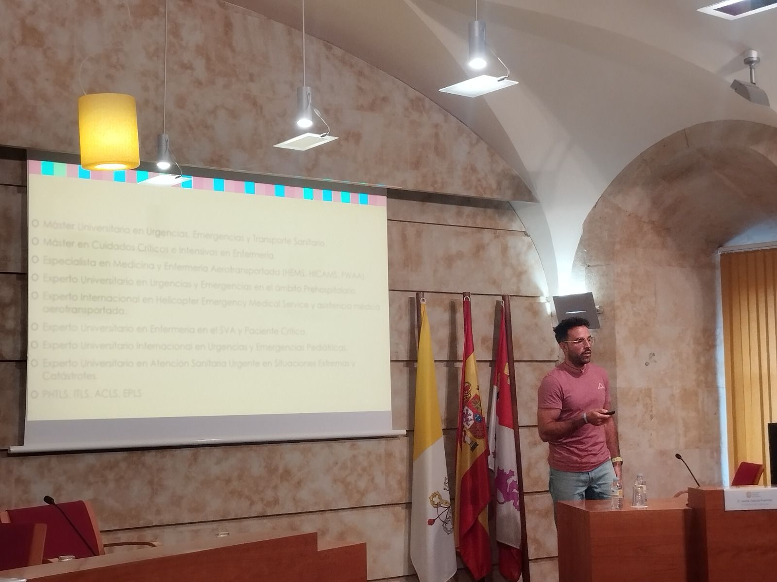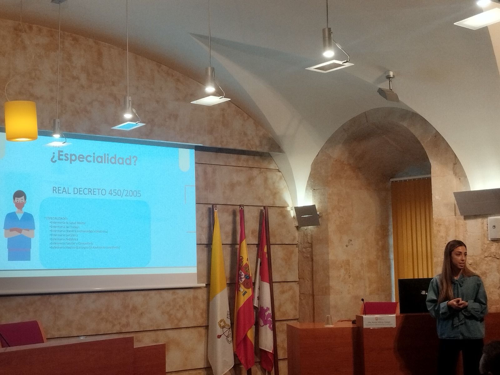A lo largo de la mañana, los futuros profesionales de Enfermería han escuchado las experiencias, recomendaciones, sugerencias y advertencias de profesionales de perfiles muy diferentes. Así, han participado en las jornadas Francisco Herrero Cuéllar, enfermero en Instituciones Penitenciarias; Pino Sánchez Herrero, directora de Enfermería del Hospital HM Santísima Trinidad; Virginia Herrera de Cabo, enfermera en la mutua Fremap (experta en emergencia extra hospitalarias y urgencias vitales); Laura Barés Leal, enfermera obstétrico-ginecológica-matrona; Rocío Villoria Crespo, enfermera especialista en Enfermería Familiar y Comunitaria, Mei Fernández Crespo, enfermera investigadora del IBSAL, y Jaime García Fuentes, enfermero de urgencias.
