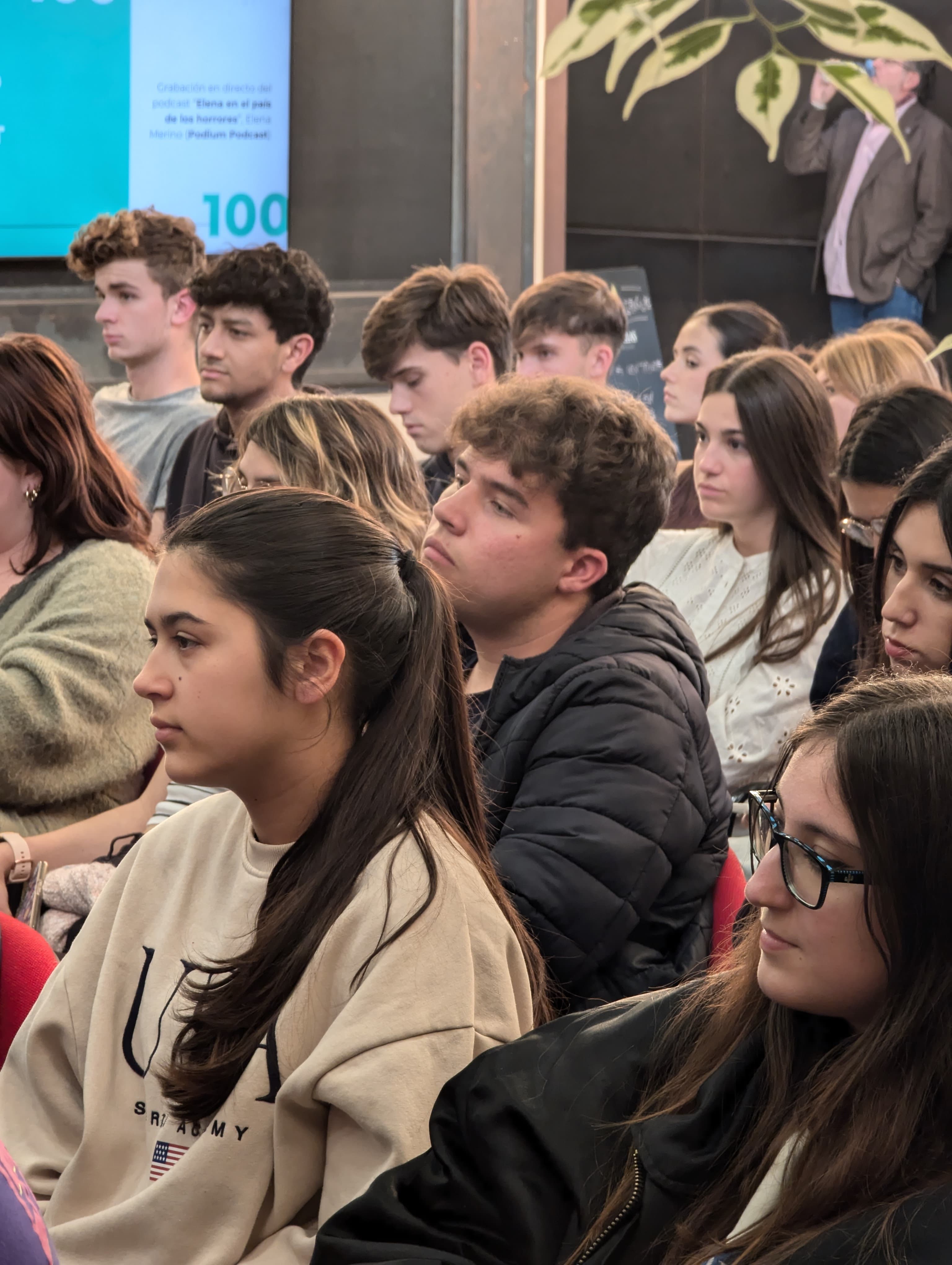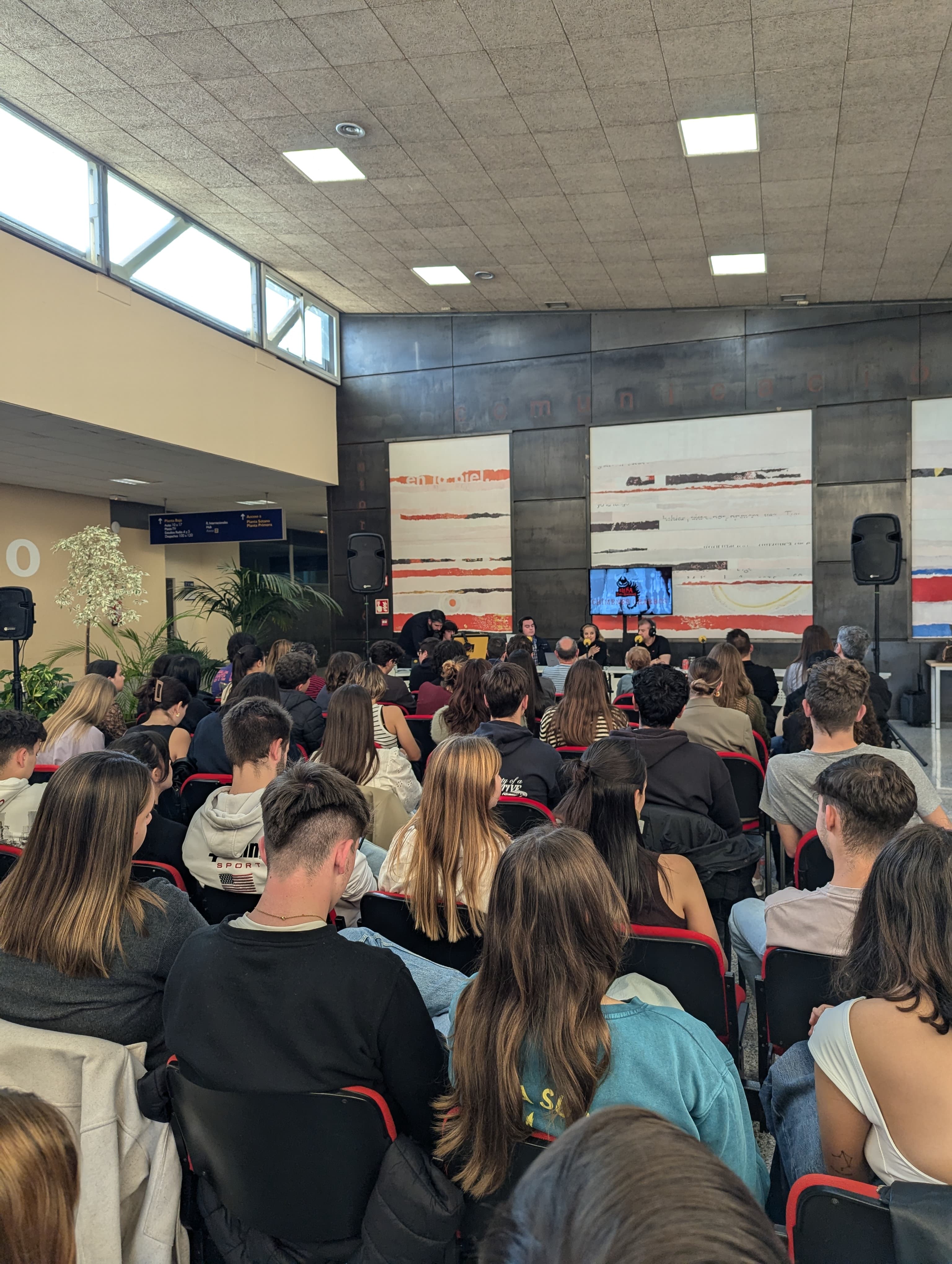 Posteriormente, se desarrolló la grabación en directo del podcast 'Elena en el país de los horrores' (Podium Pódcast), de la periodista especializada en crímenes y antigua alumna Elena Merino. Los interesados en la serie de misterio, horror, leyenda y criaturas sombrías, que cuenta ya con 14 temporadas, pudieron disfrutar de la grabación en el hall de la Facultad, con sus colaboradores invitados como el artista Salvador Larroca, al frente de colecciones de superhéroes americanos como Iron Man, Los Vengadores, etc.; María Rivas (alumni) y reportera de sucesos; Tomás Hijo (alumni) ilustrador internacional y asiduo colaborador del programa Cuarto Milenio y de Guillermo del Toro, y el director de la Unidad de Análisis de la Conducta Criminal de la USAL, Javier de Santiago.
