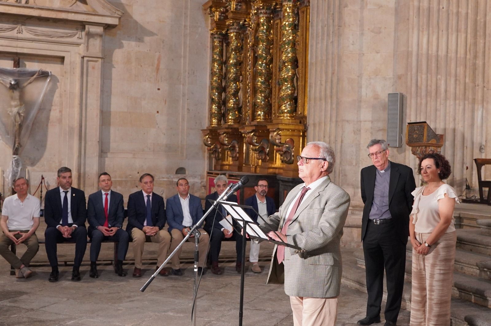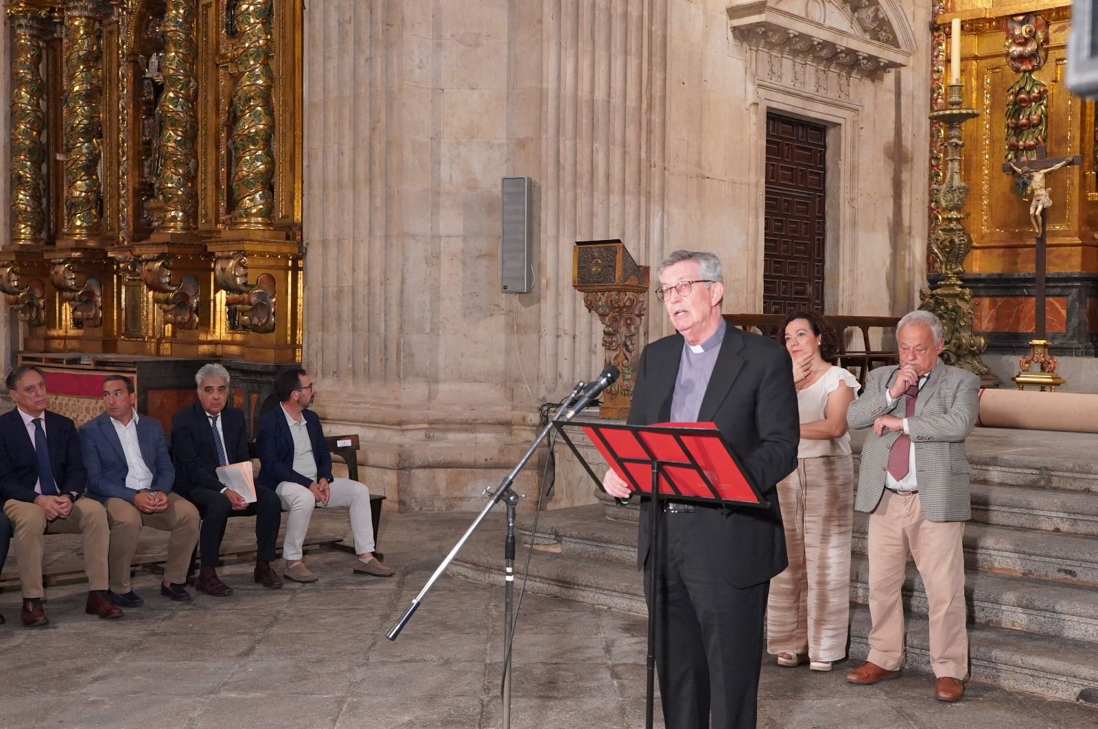 Por su parte, el Rector de la Universidad Pontificia de Salamanca, Santiago García-Jalón de la Lama, ha agradecido a la Junta de Castilla y León su inestimable apoyo, “que hace que podamos conservar y poner en valor un conjunto artístico excepcional, testimonio de la espiritualidad, la historia y el arte barroco español del siglo XVII”. García-Jalón ha subrayado el carácter católico tanto del templo como de la propia Universidad y ha subrayado la belleza del retablo, en el que ha destacado “su potente movimiento barroco y un programa iconográfico, unitario y profundamente teológico que culmina en la exaltación de la Eucaristía, tema central reforzado por el descenso del Espíritu Santo en Pentecostés y por la Trinidad”.