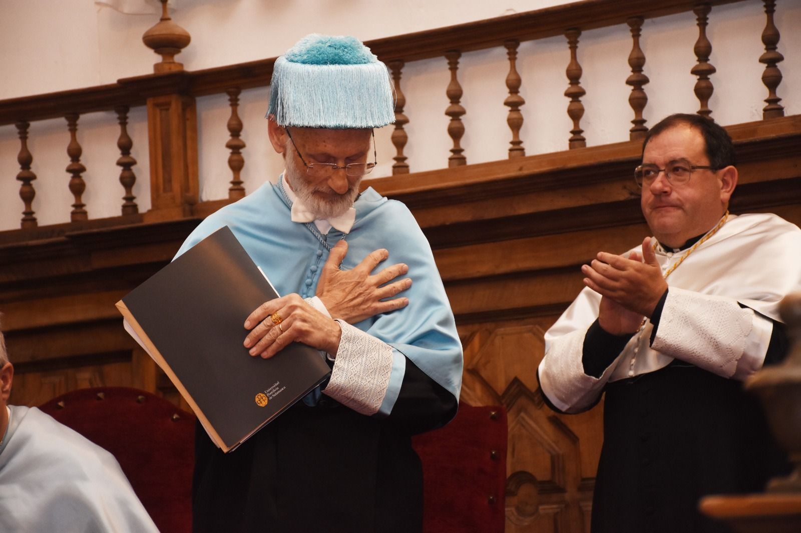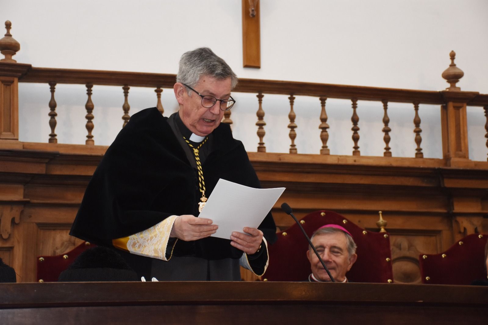 Finalmente, el Rector concluyó con su sincera enhorabuena: “El voto de que esta renovada unión entre el Prof. Conill y la Universidad Pontificia de Salamanca siga siendo tan fecunda como hasta ahora ha sido y que se prolongue en el tiempo ad multos annos, ad multos annos”.