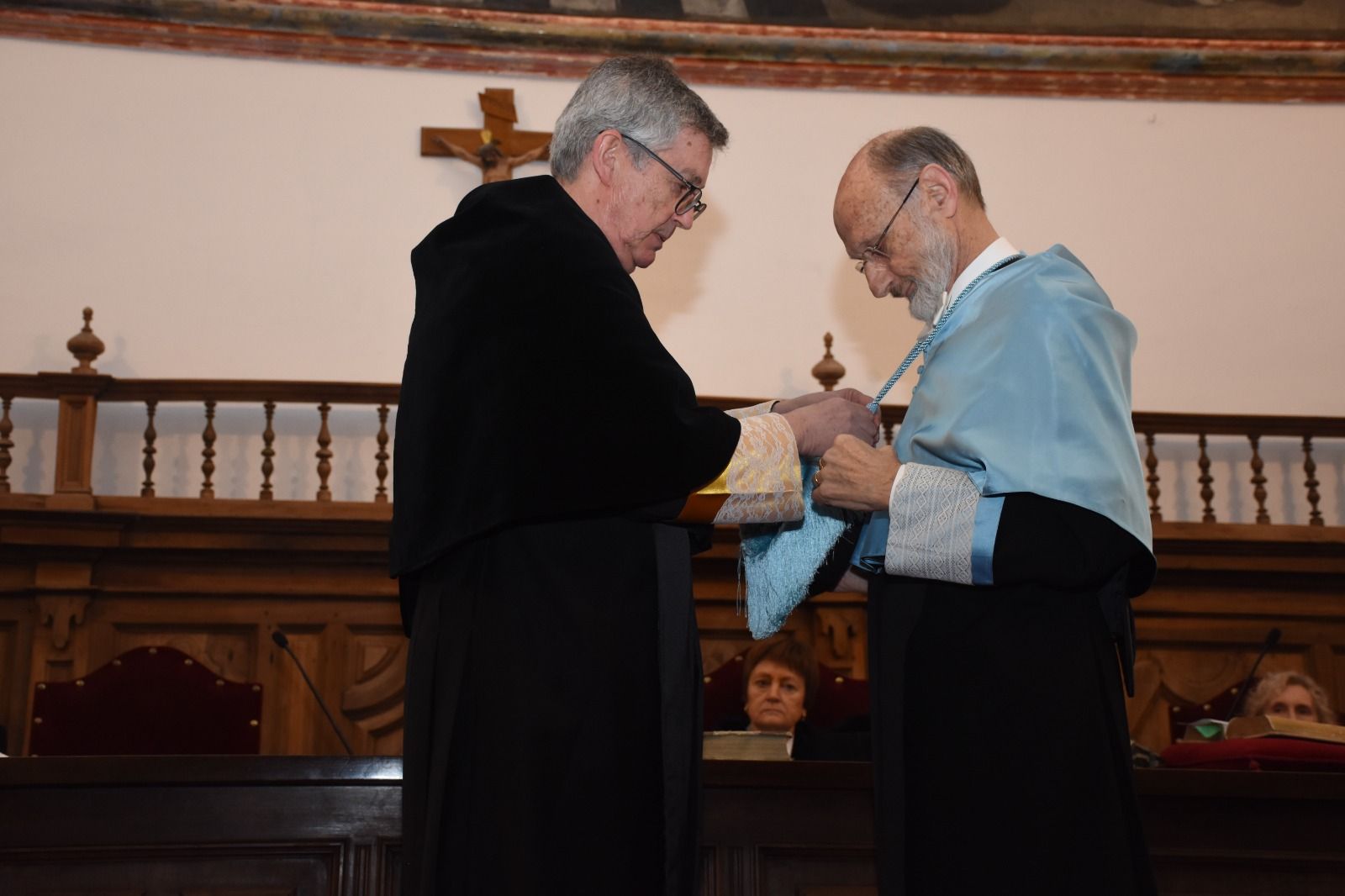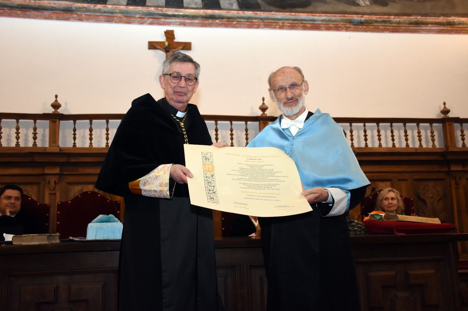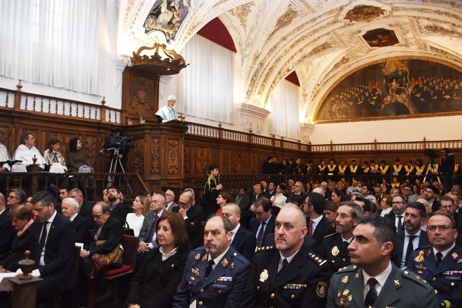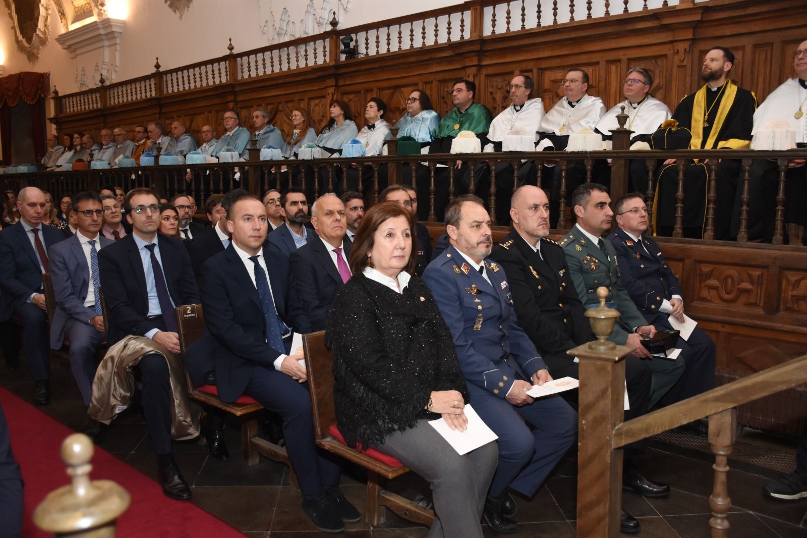 El acto contó, además, con la asistencia del arzobispo de Valencia, monseñor Enrique Benavent Vidal; la rectora de la Universidad de Valencia, M.ª Vicenta Mestre Escrivà; el rector de la Universidad Católica de Valencia, José Manuel Pagán Agulló; la vicerrectora de la USAL Marta Gutiérrez Sastre; la subdelegada del Gobierno, Rosa M.ª López Alonso; el subdelegado de Defensa, Emilio García Herrera; el comisario jefe de la Policía Nacional, Claudio Javier Díaz Serrano; el jefe de la Comandancia de la Guardia Civil, Arturo Marcos Sánchez; el teniente coronel de la Base Aérea de Matacán, Carlos Alberto Gijón Sánchez; y el concejal de Educación, Luis Sánchez Arévalo, entre otras autoridades académicas, civiles, militares y empresariales.