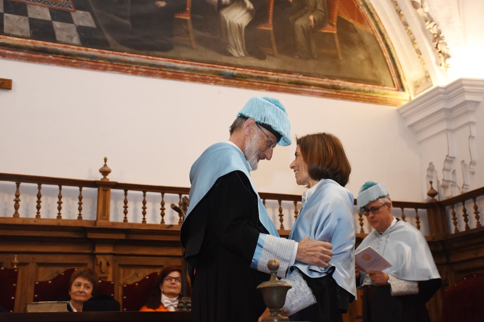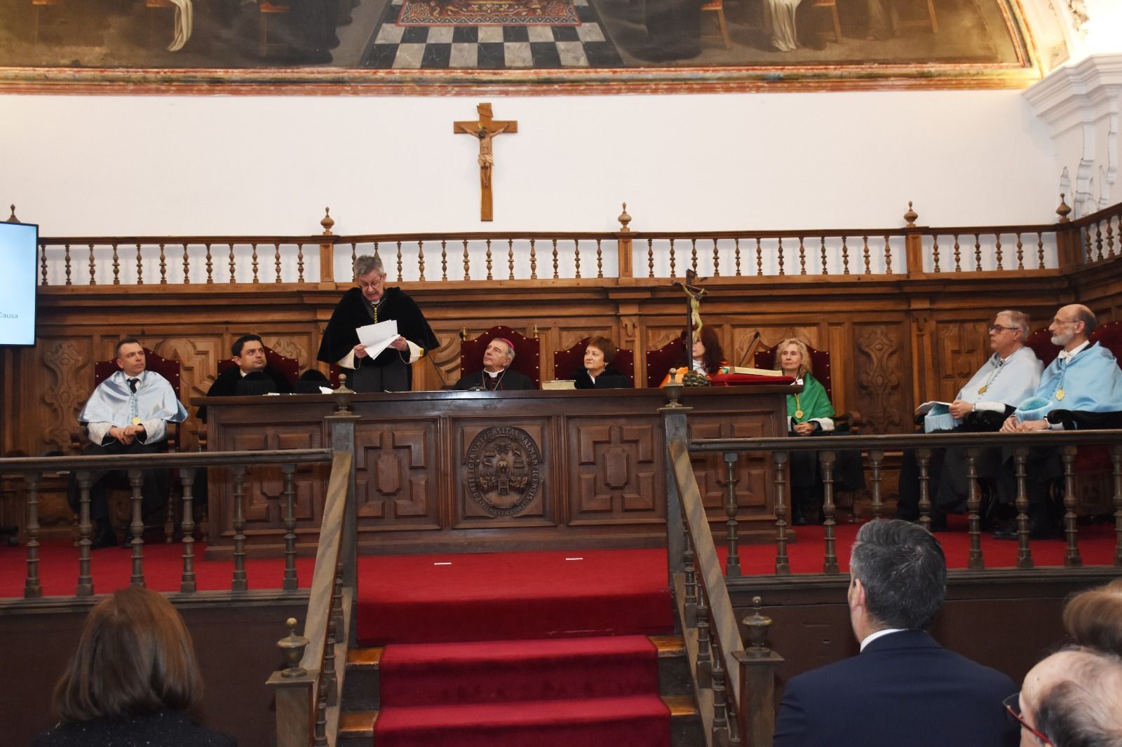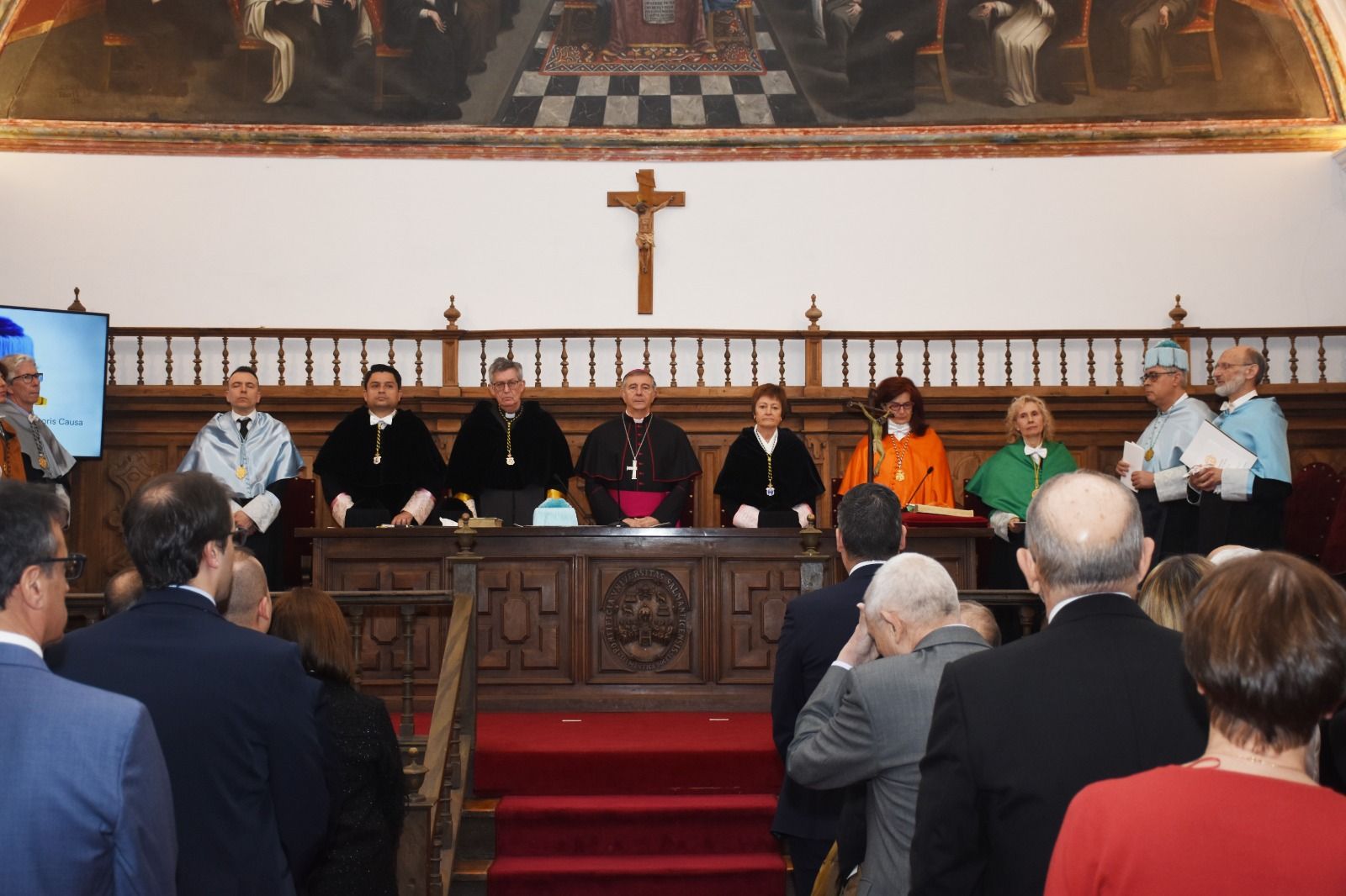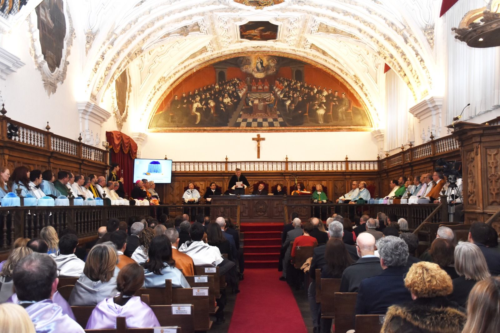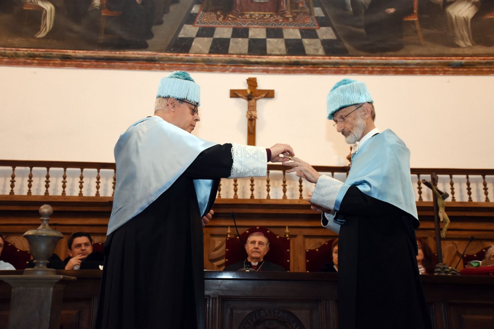 El acto contó, además, con la asistencia del arzobispo de Valencia, monseñor Enrique Benavent Vidal; la rectora de la Universidad de Valencia, M.ª Vicenta Mestre Escrivà; el rector de la Universidad Católica de Valencia, José Manuel Pagán Agulló; la vicerrectora de la USAL Marta Gutiérrez Sastre; la subdelegada del Gobierno, Rosa M.ª López Alonso; el subdelegado de Defensa, Emilio García Herrera; el comisario jefe de la Policía Nacional, Claudio Javier Díaz Serrano; el jefe de la Comandancia de la Guardia Civil, Arturo Marcos Sánchez; el teniente coronel de la Base Aérea de Matacán, Carlos Alberto Gijón Sánchez; y el concejal de Educación, Luis Sánchez Arévalo, entre otras autoridades académicas, civiles, militares y empresariales.
