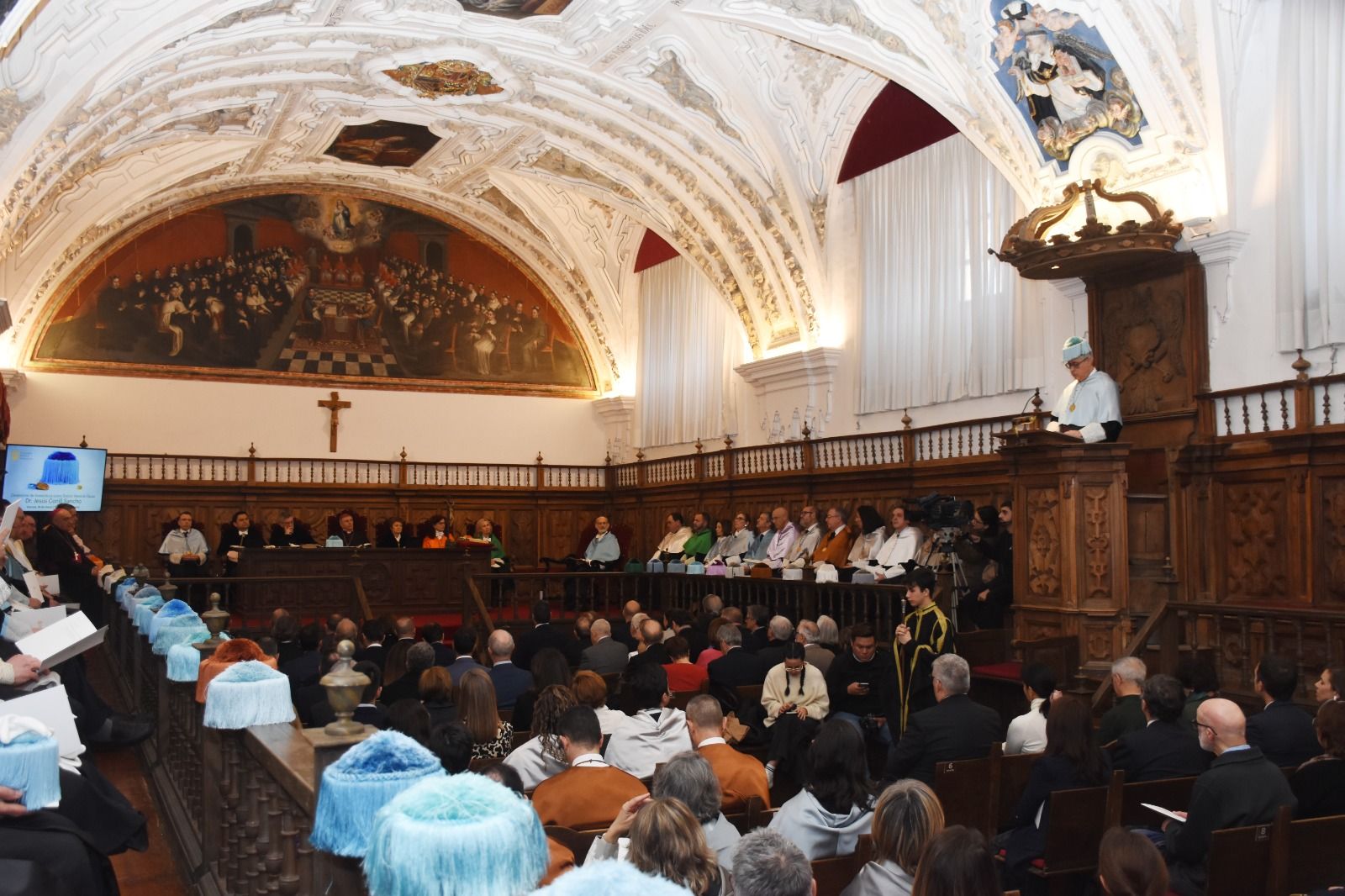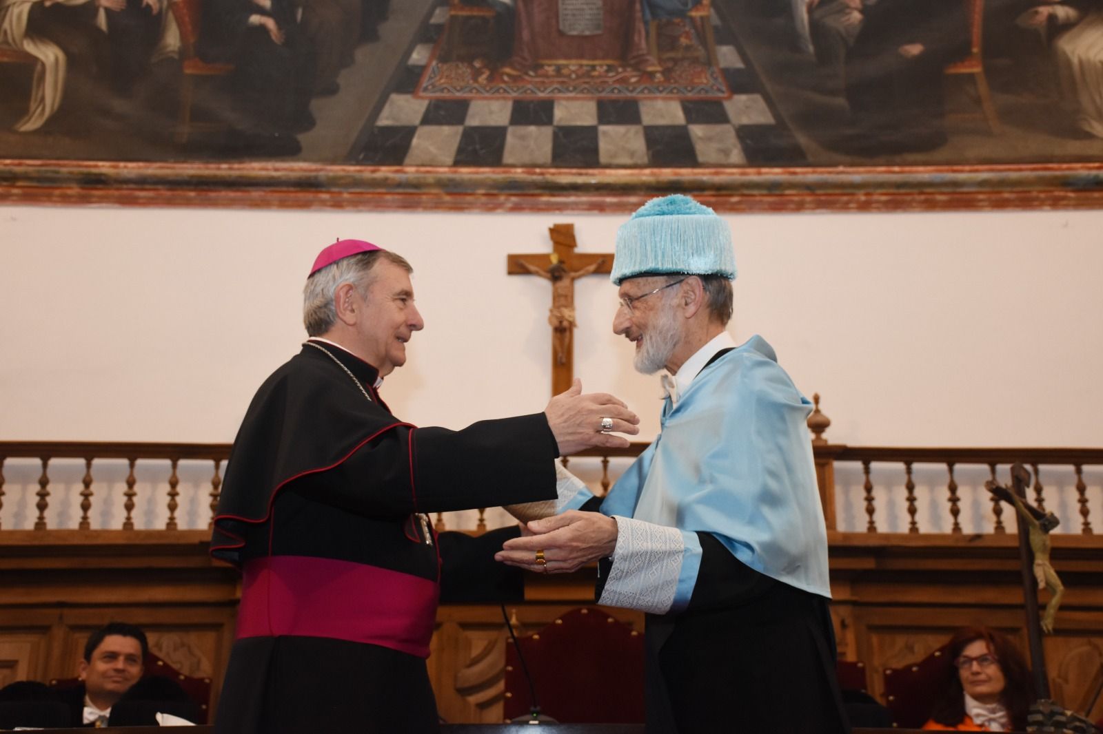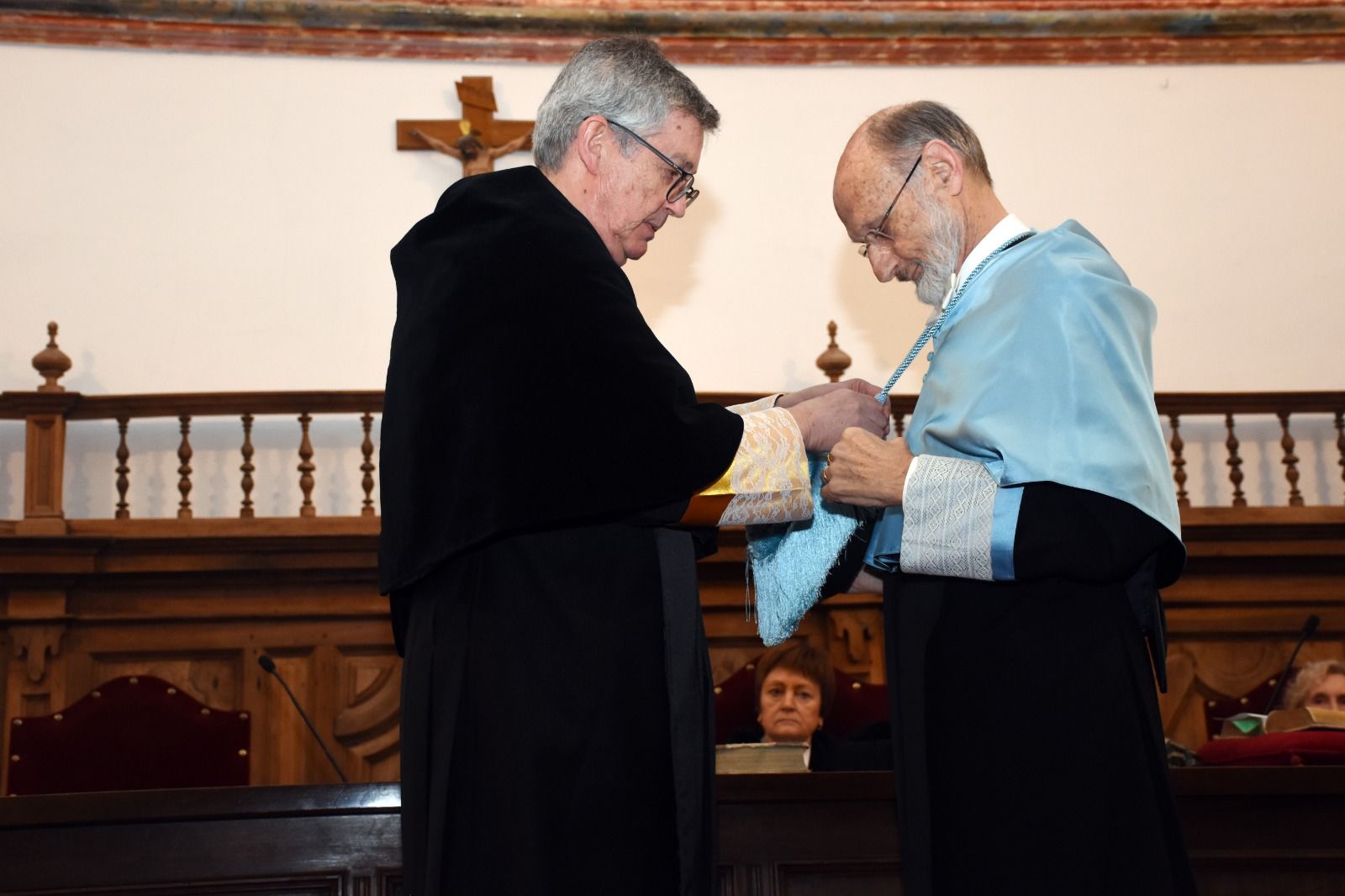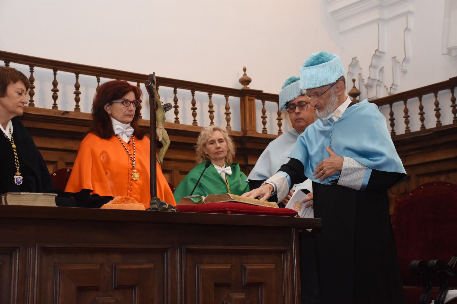 El acto contó, además, con la asistencia del arzobispo de Valencia, monseñor Enrique Benavent Vidal; la rectora de la Universidad de Valencia, M.ª Vicenta Mestre Escrivà; el rector de la Universidad Católica de Valencia, José Manuel Pagán Agulló; la vicerrectora de la USAL Marta Gutiérrez Sastre; la subdelegada del Gobierno, Rosa M.ª López Alonso; el subdelegado de Defensa, Emilio García Herrera; el comisario jefe de la Policía Nacional, Claudio Javier Díaz Serrano; el jefe de la Comandancia de la Guardia Civil, Arturo Marcos Sánchez; el teniente coronel de la Base Aérea de Matacán, Carlos Alberto Gijón Sánchez; y el concejal de Educación, Luis Sánchez Arévalo, entre otras autoridades académicas, civiles, militares y empresariales.