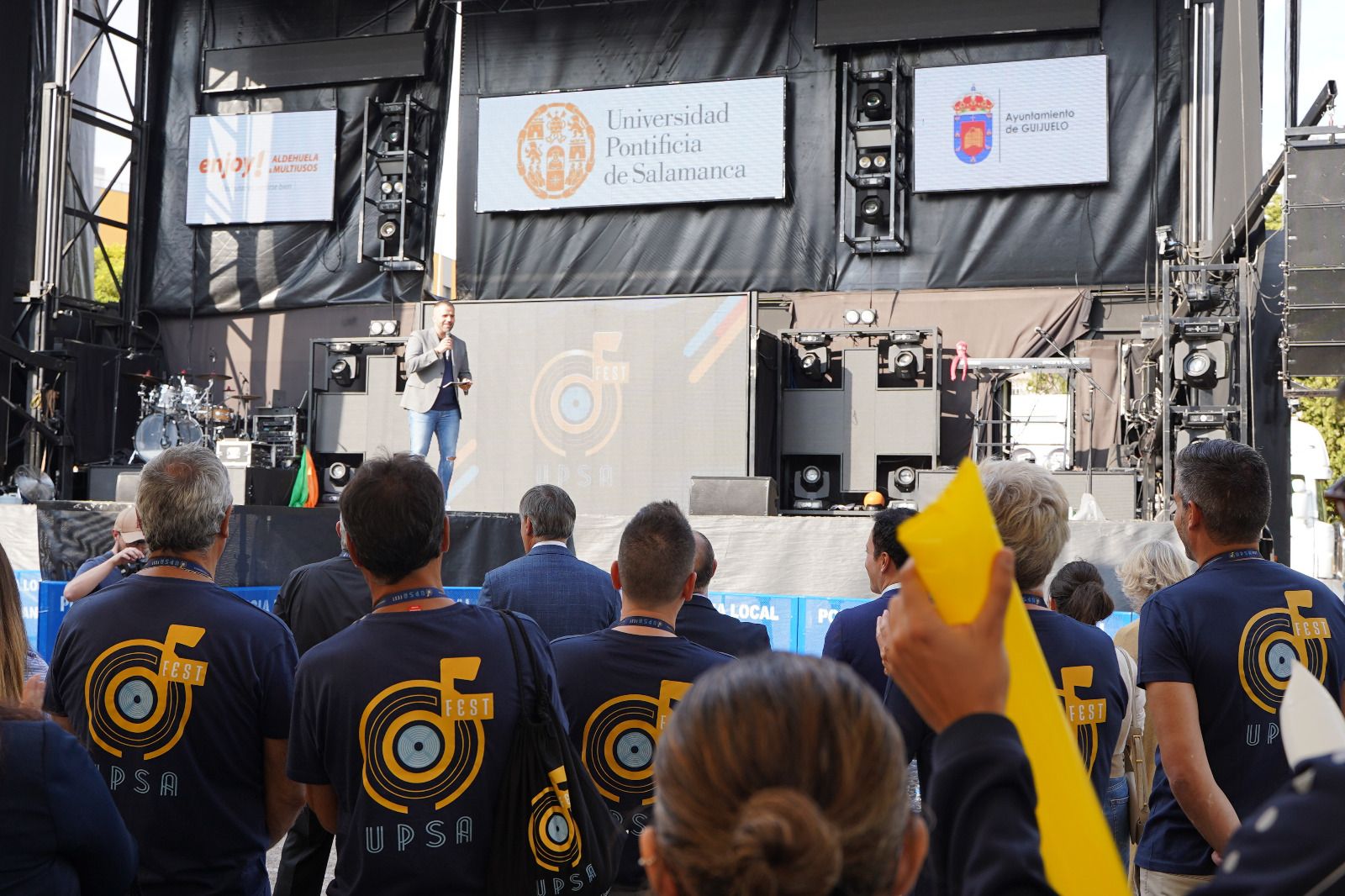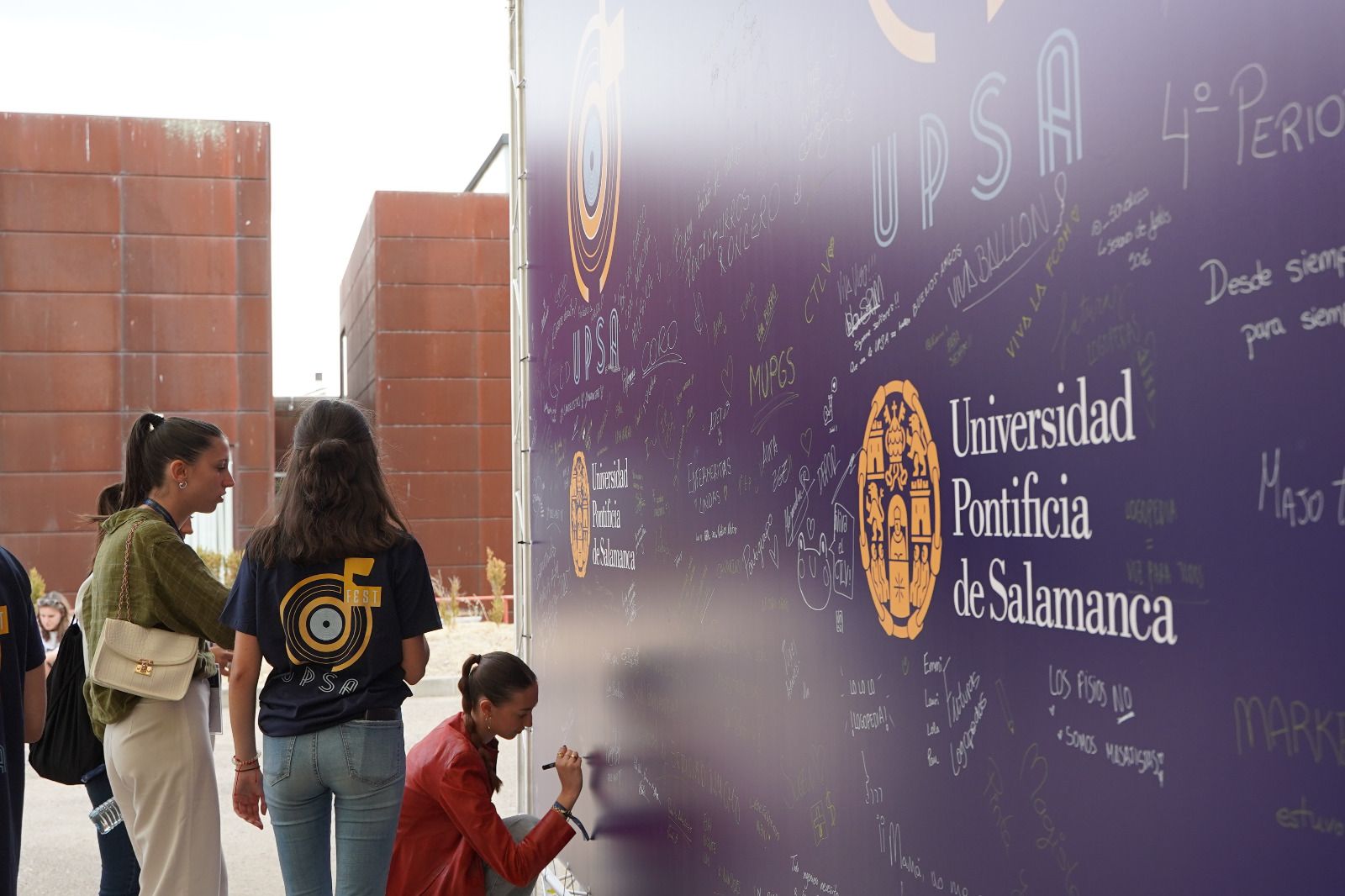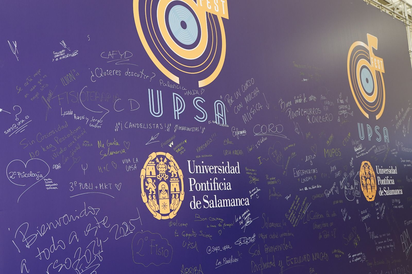 Más de un millar de estudiantes de la Universidad Pontificia de Salamanca (UPSA) asistieron ayer al 'UPSAFest', jornada de bienvenida y acogida, organizada para los nuevos estudiantes, alumnos actuales y que estuvo abierta a toda la comunidad universitaria. El evento tuvo lugar de 17:00 a 22:00 horas en el parking ubicado entre la Facultad de Comunicación y el Colegio Mayor Santa María y contó con la asistencia del Rector, Santiago García-Jalón de la Lama, el Equipo Rectoral, así como autoridades académicas.