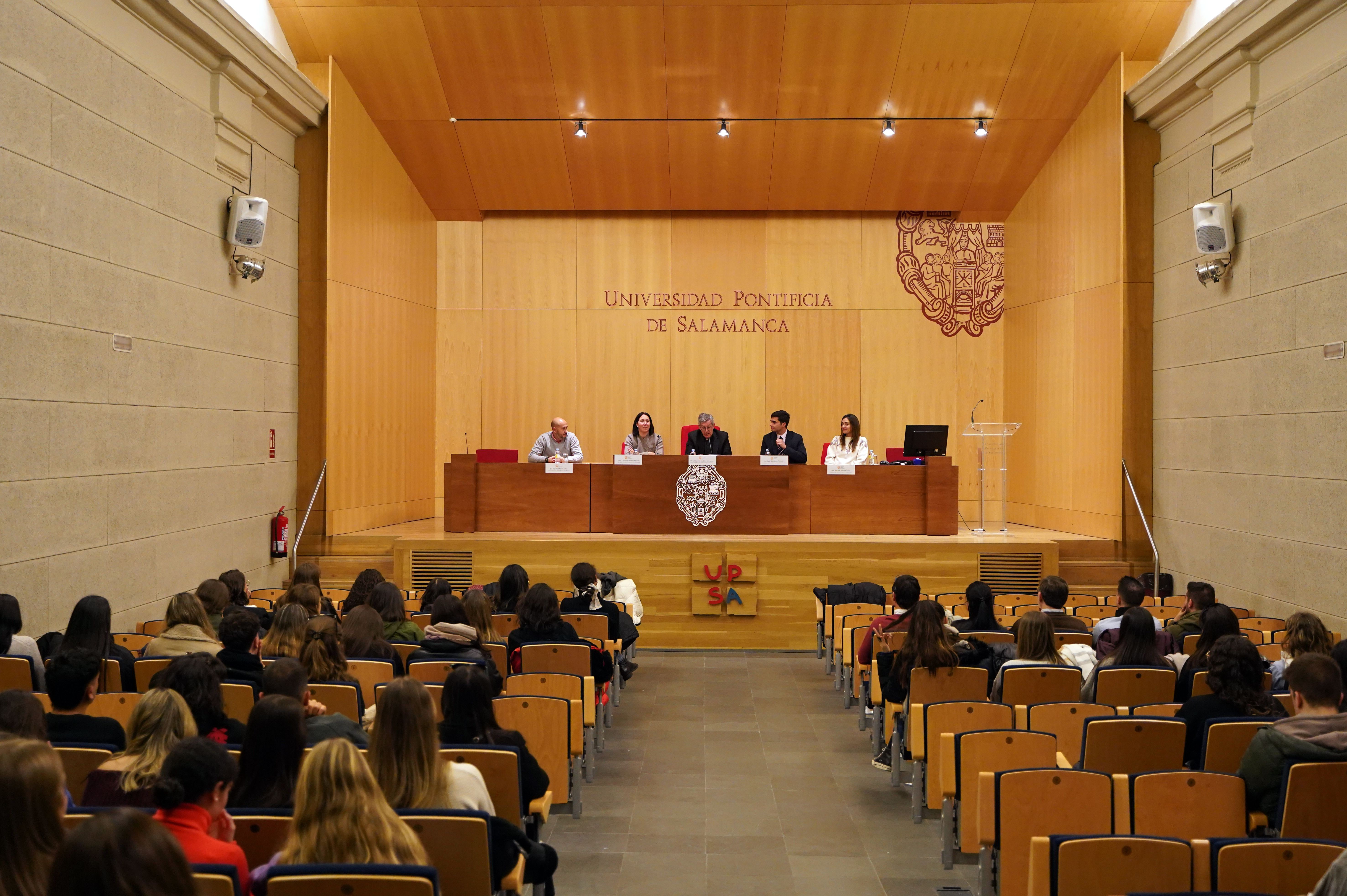 Estudiantes y profesores de la Facultad de Enfermería y Fisioterapia ‘Salus Infirmorum’, del Campus de Madrid, han viajado hoy a Salamanca paraconocer la Sede central, con motivo de la celebración de su patrona Nuestra Señora de la Esperanza Divina Enfermera.