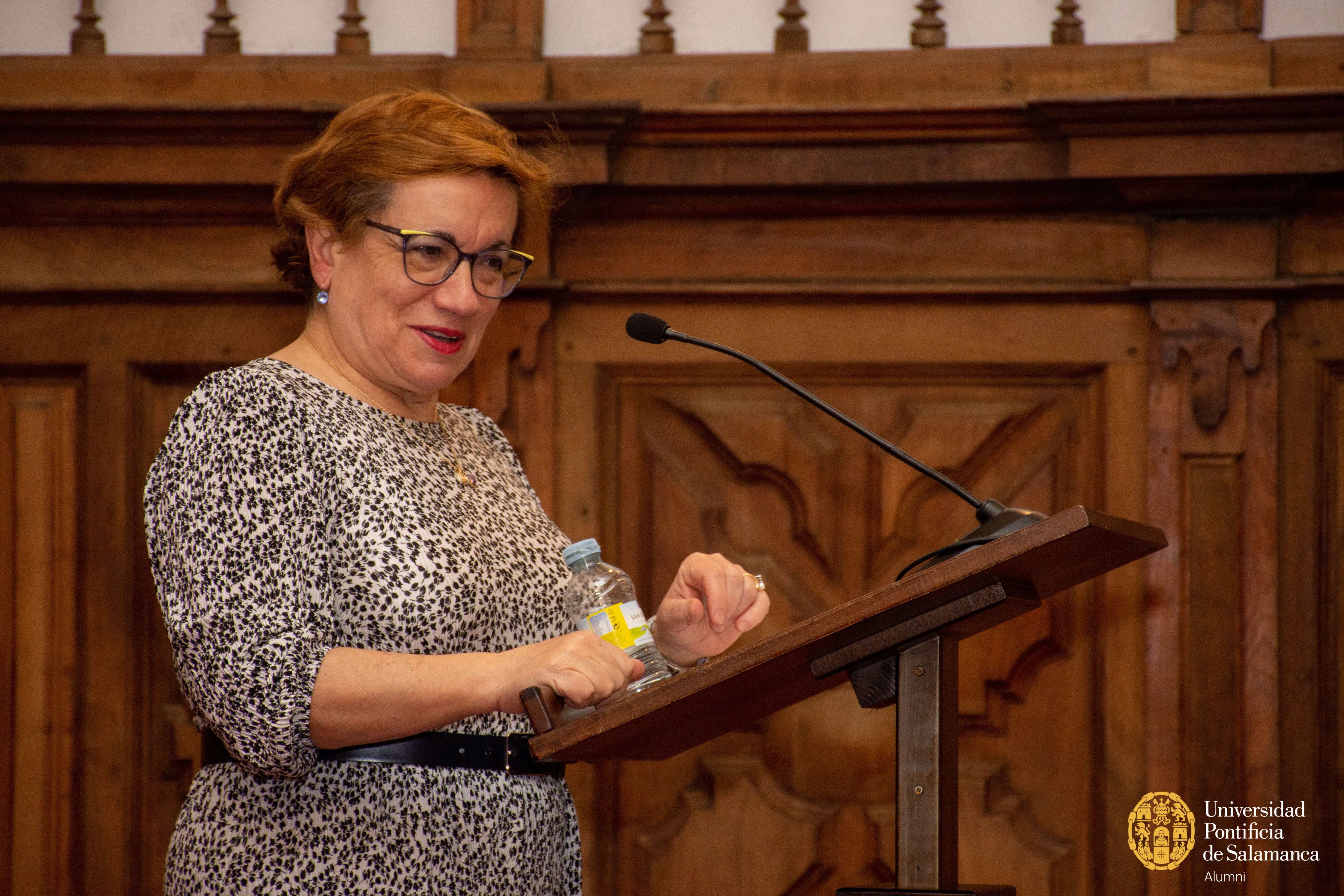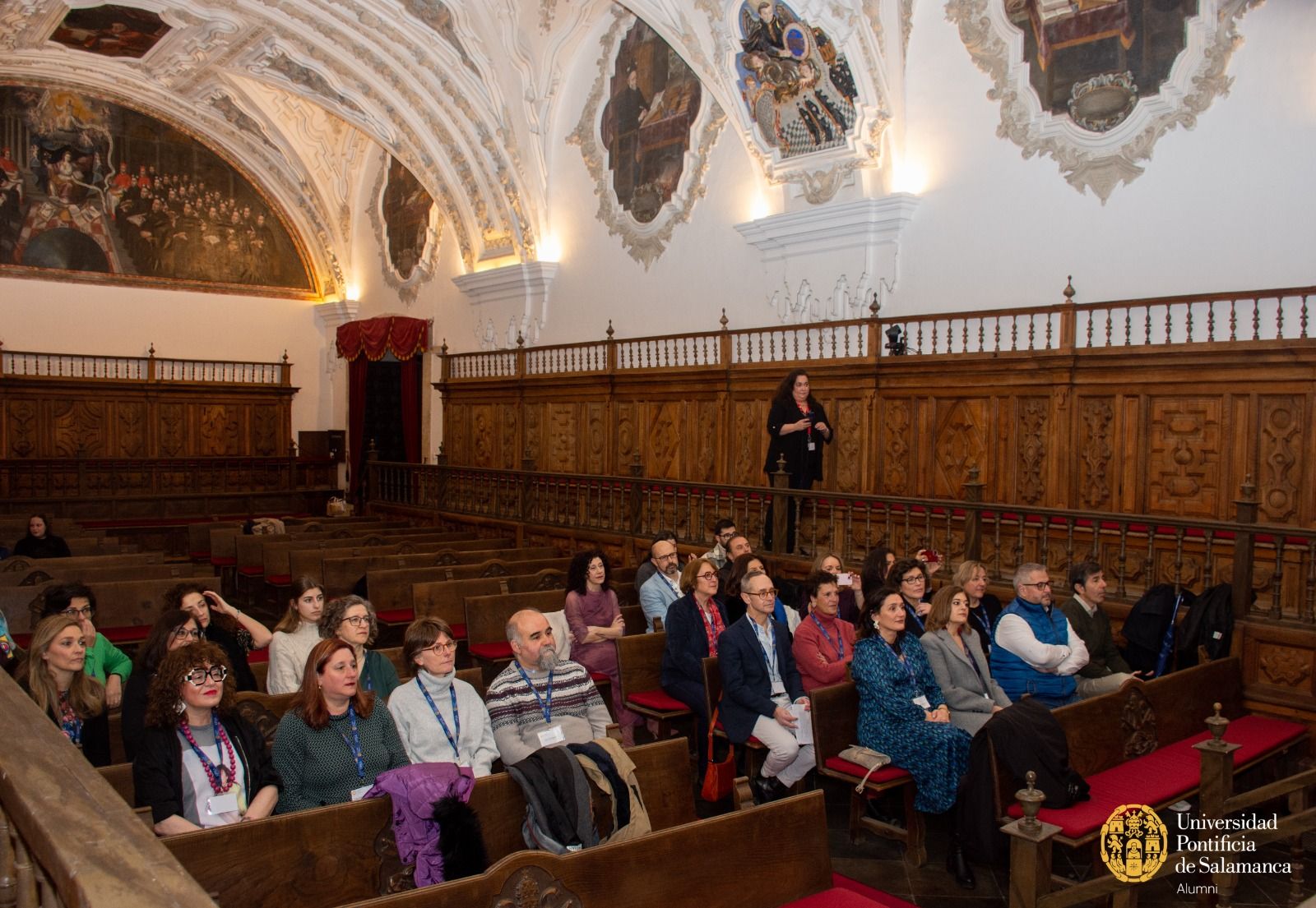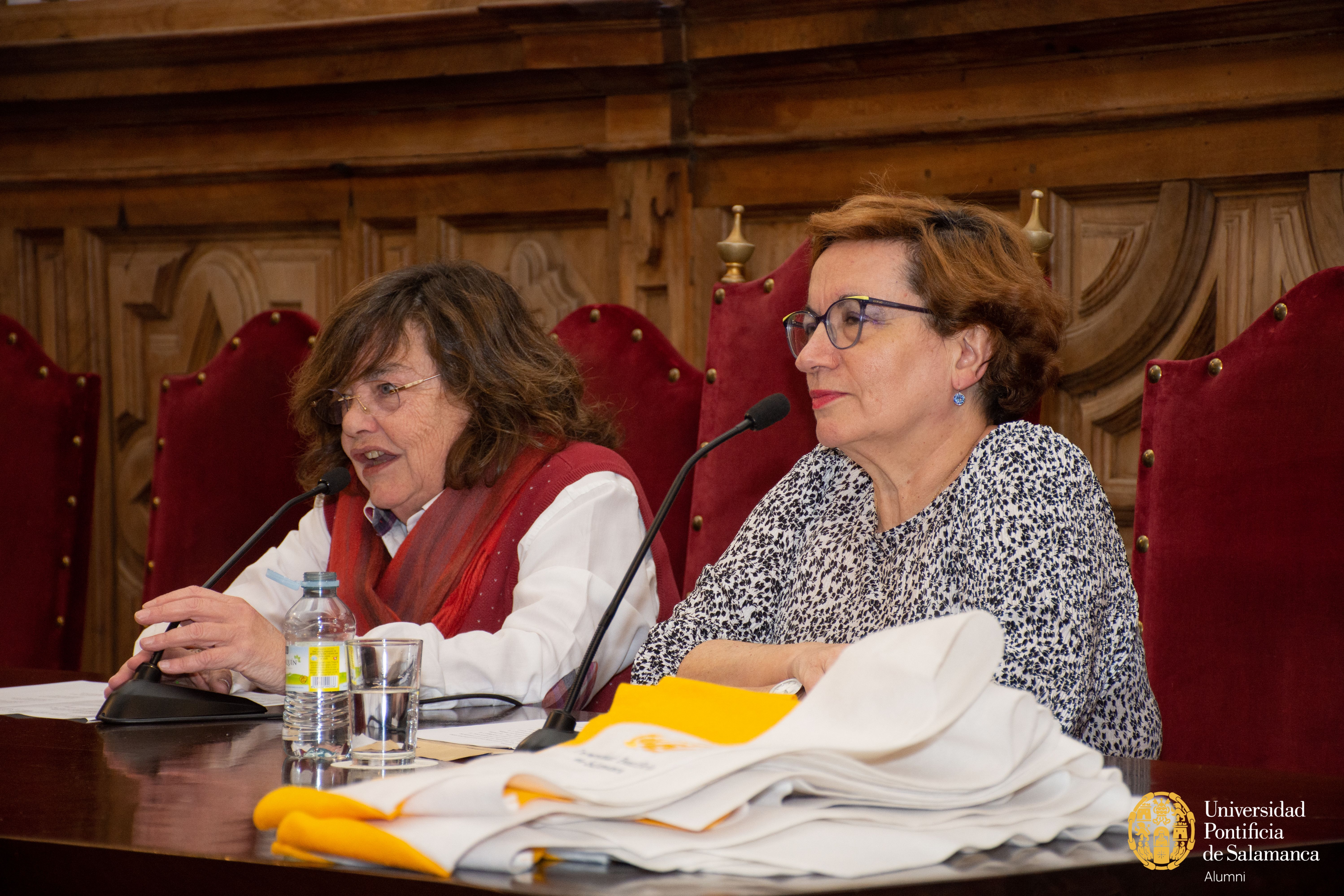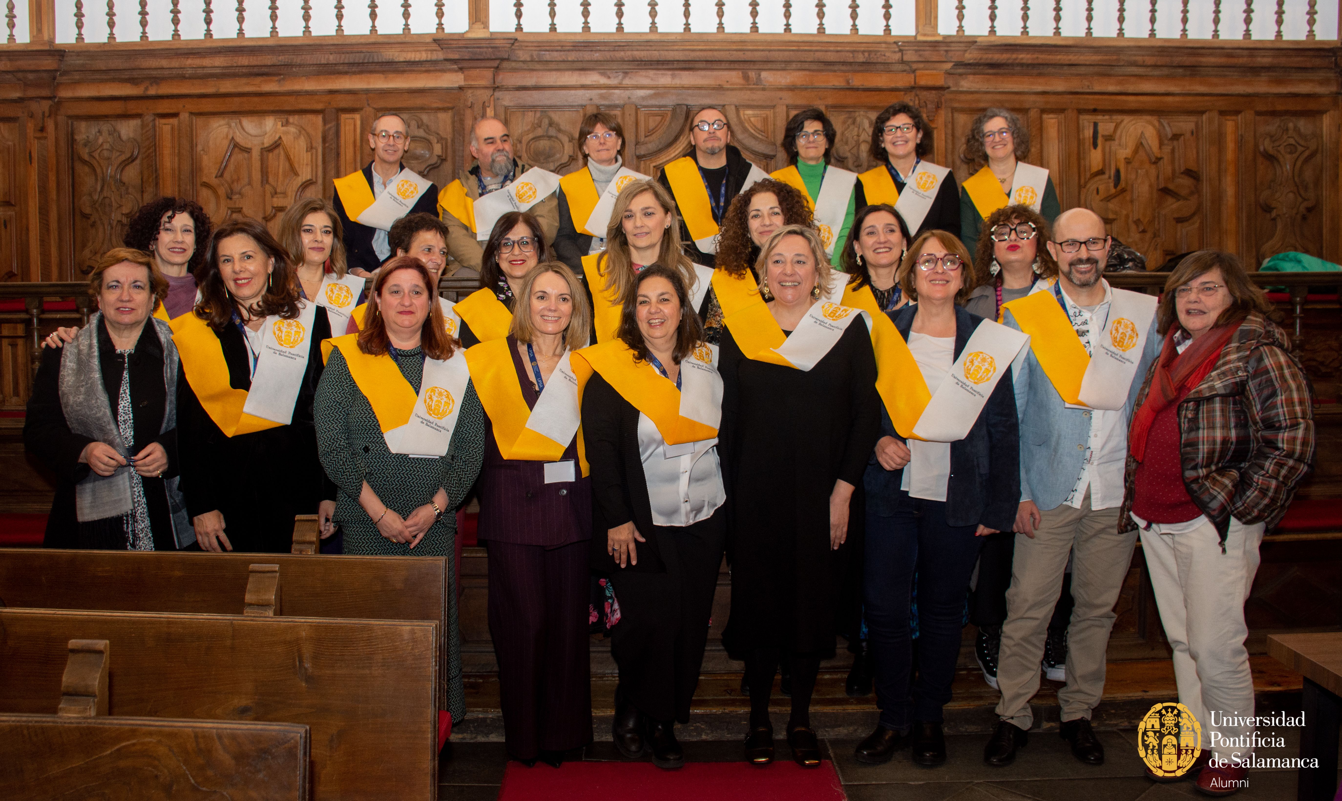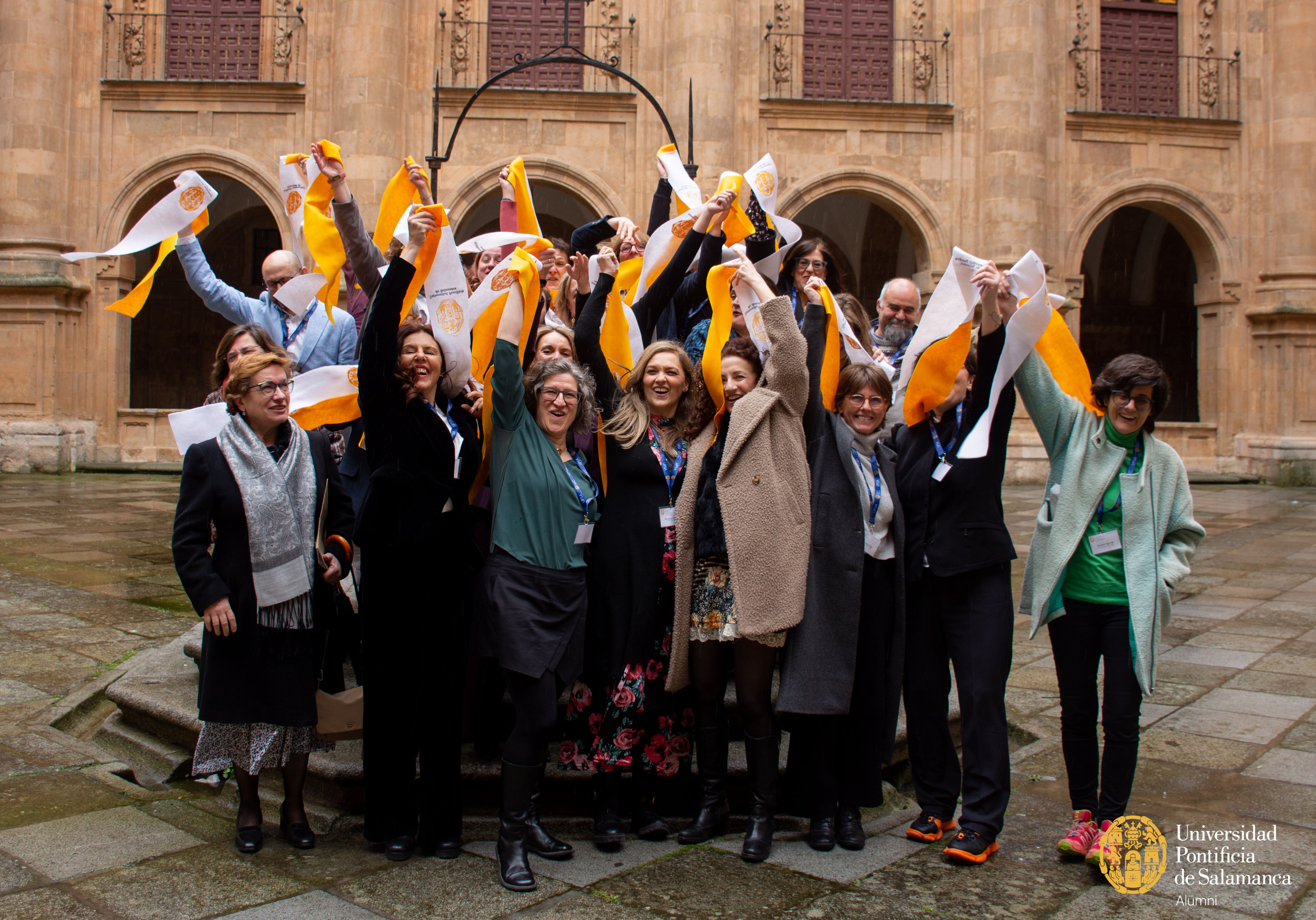 Una vez finalizadas las palabras de la madrina, fue el turno del alumni Antonio Blanco, quien recordó los mejores momentos del grupo durante sus estudios universitarios. Tras la proyección de un vídeo recordatorio de aquella etapa y la imposición de becas, los asistentes inmortalizaron este emotivo encuentro con varias fotos de grupo en el Aula Magna y en el Patio Barroco.