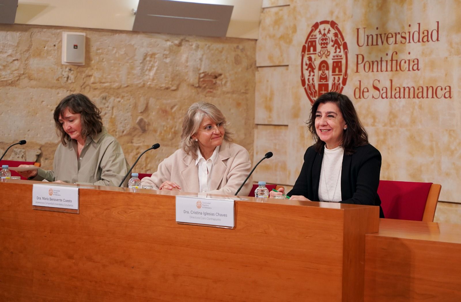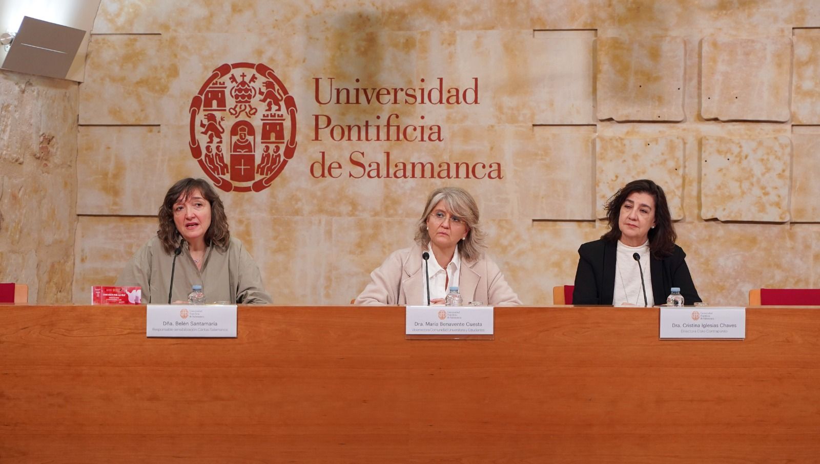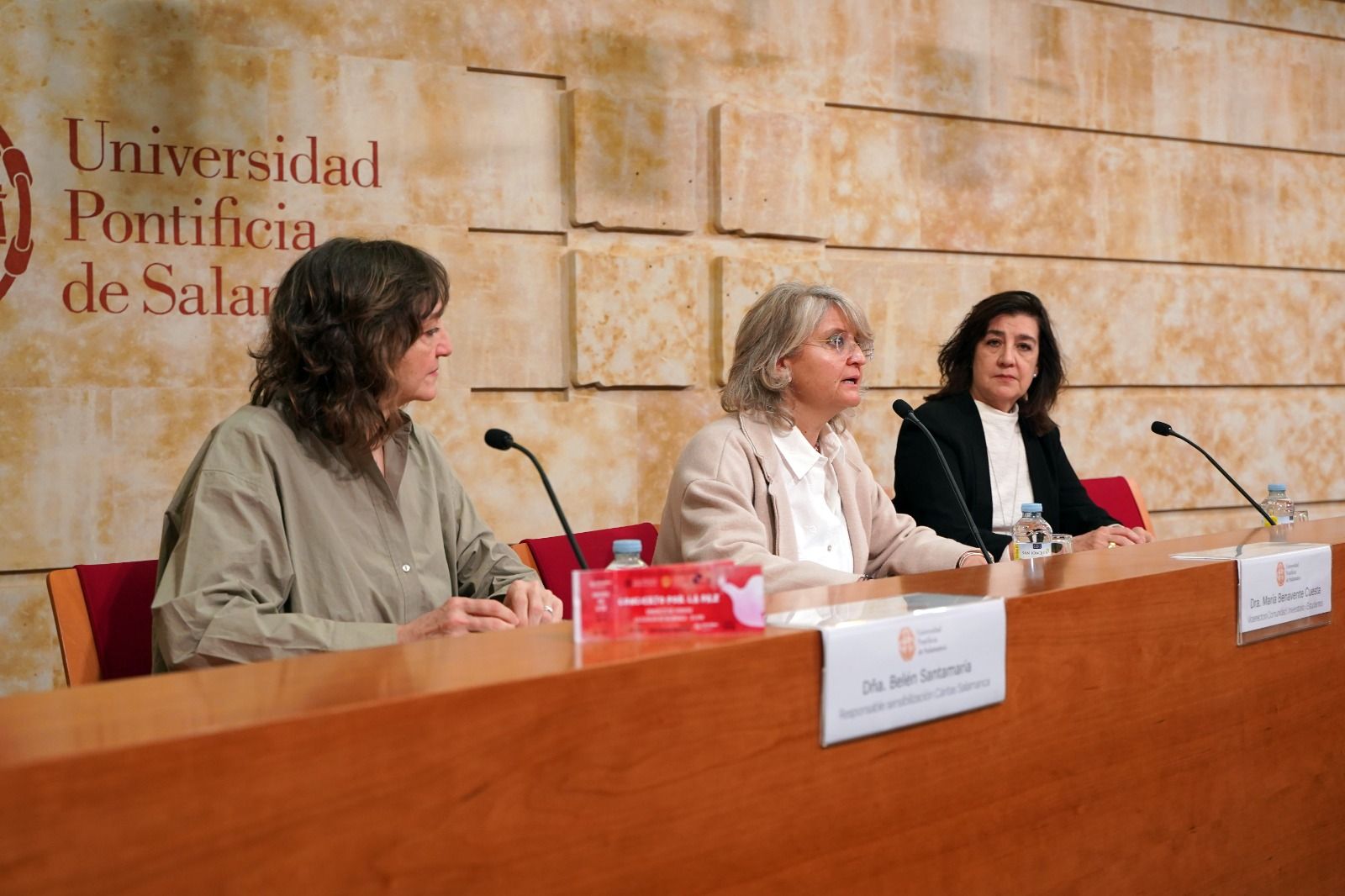 El acto ha contado con la presencia de la vicerrectora de Comunidad Universitaria y Estudiantes, María H. Benavente; Belén Santamaría, responsable de sensibilización de Cáritas, y Cristina Iglesias, directora del coro Contrapunto de la Facultad de Educación de la UPSA.
