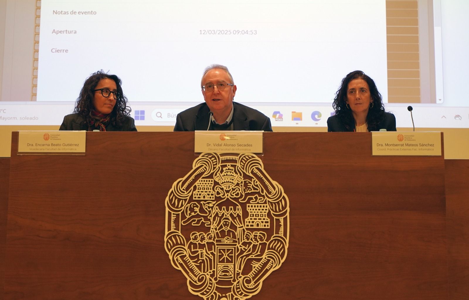 El decano de la Facultad de Informática, Vidal Alonso Secades, acompañado de la coordinadora de prácticas externas de la Facultad, Montserrat Mateos Sánchez, ha inaugurado las sesiones y ha señalado que “esta Jornada reúne dos mundos: el mundo académico y el mundo laboral. Hoy, el conocimiento se une a la oportunidad, así que los estudiantes tenéis la posibilidad de abordar vuestro futuro. Hagamos de estas ponencias un verdadero motor de cambio y progreso”.