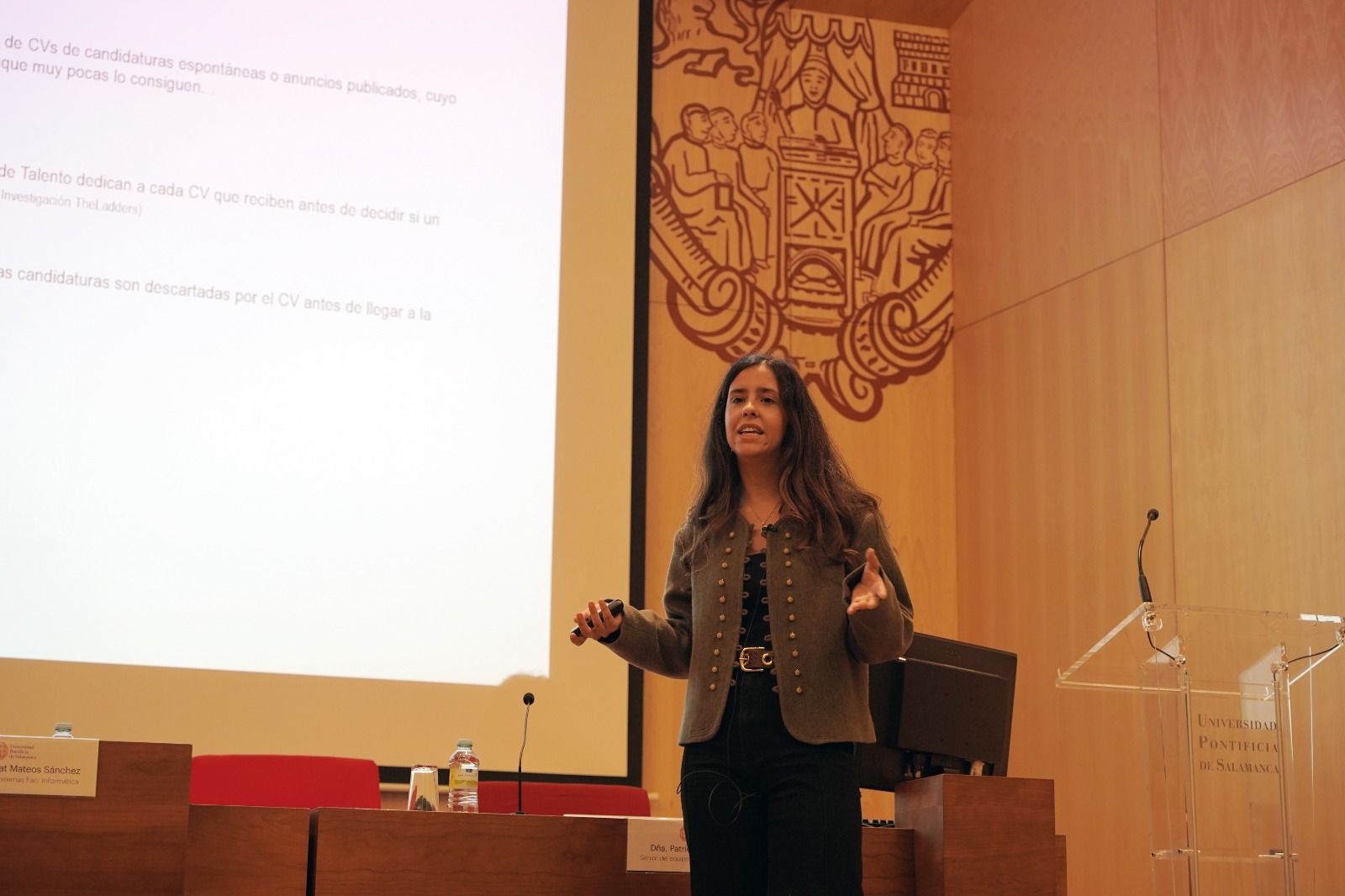 A continuación, Patricia Muñoyerro, del equipo de Talento en Deloitte, ha impartido una conferencia en la que ha ofrecido a los estudiantes las claves para convertirse en el mejor candidato en el proceso de selección de una empresa.