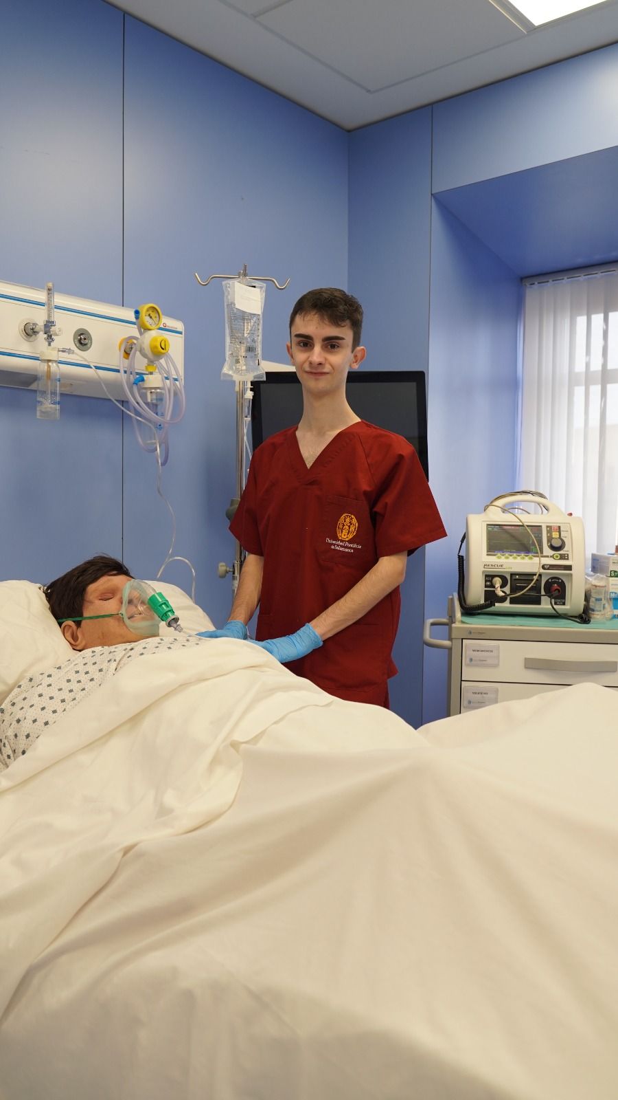(R): Reconozco que me decantaría por todos aquellos conocimientos relacionados con los cuidados y la atención de Enfermería, pero si tuviera que destacar una asignatura en concreto, sin duda elegiría Practicum, desde el primer hasta el último año, ya que al combinar una parte de simulación con las prácticas externas, es donde más creo que puedes aplicar tus conocimientos teóricos y por tanto mejorar tu práctica clínica con ayuda del amplio equipo docente en el Centro de Simulación Clínica Avanzada para luego, en las rotaciones externas, perfilar las actuaciones de Enfermería. Antes de comenzar el Grado, tenía la concepción de que el enfermero ‘solo pincha’ y, gracias a las diversas materias que he estudiado y las prácticas externas, he descubierto que su labor va mucho más allá. Y es por ello por lo que me interesan los cuidados y la atención, con la elaboración de planes de cuidados, atención psicosocial, y la atención holística que tanto caracteriza a nuestra profesión y que se centra en una atención holística del paciente, considerando sus dimensiones físicas, emocionales, sociales y espirituales para promover su bienestar total.