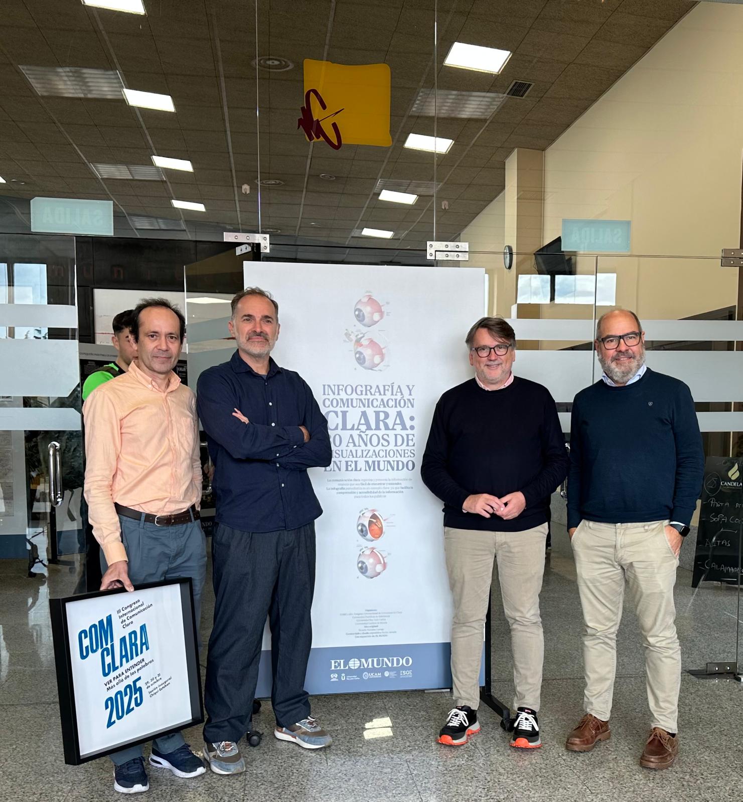 La Facultad de Comunicación ha inaugurado esta mañana la exposición Infografía y Comunicación Clara: 30 años de visualizaciones en El Mundo, cedida por este diario hasta el próximo 11 de noviembre. La muestra, ubicada en el Hall de la Facultad de Comunicación, está abierta al público de 08:30 a 20:30 horas y forma parte de las acciones desarrolladas a modo de preludio del III Congreso Internacional de Comunicación Clara COMCLARA, que se celebrará de forma online y presencial en dicha Facultad los días 30 y 31 de octubre.
