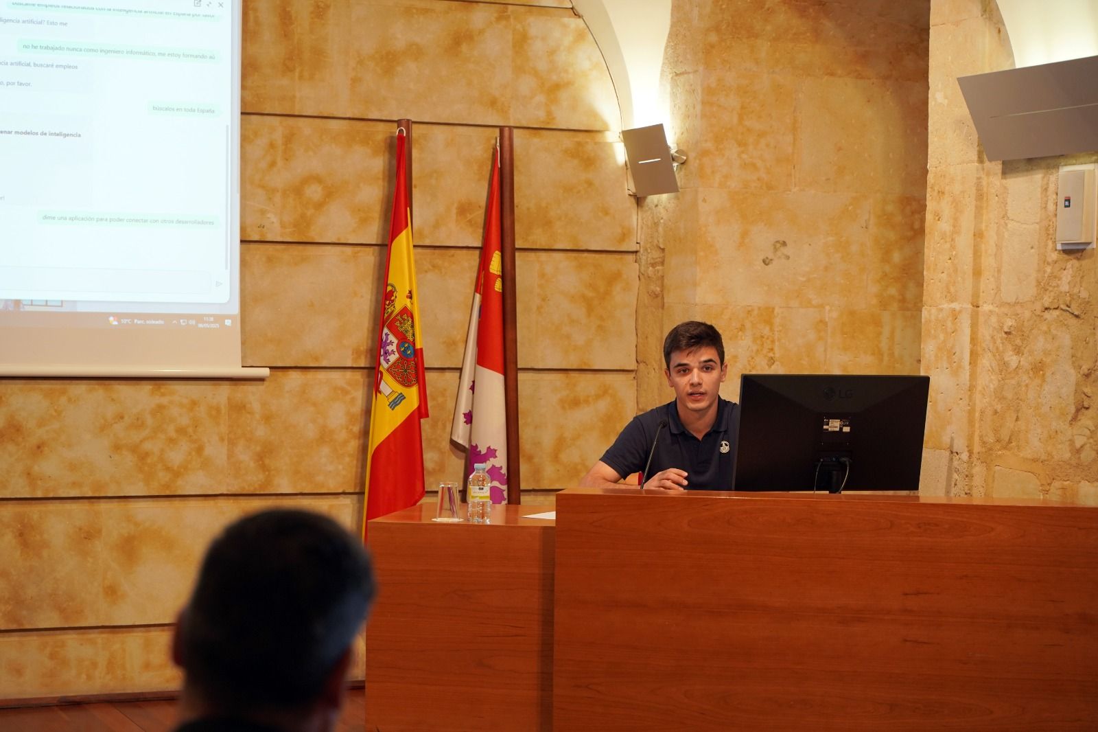 Posteriormente, para mostrar su funcionamiento, se ha realizado una demostración en vivo en la que tres estudiantes interactuaron directamente con Clara. Juan Moreno y Diego Ortiz (alumnos de la Facultad de Comunicación), junto a Alfredo Sánchez-Fuentes (alumno de la Facultad de Informática), han demostrado las potencialidades del uso de la herramienta.