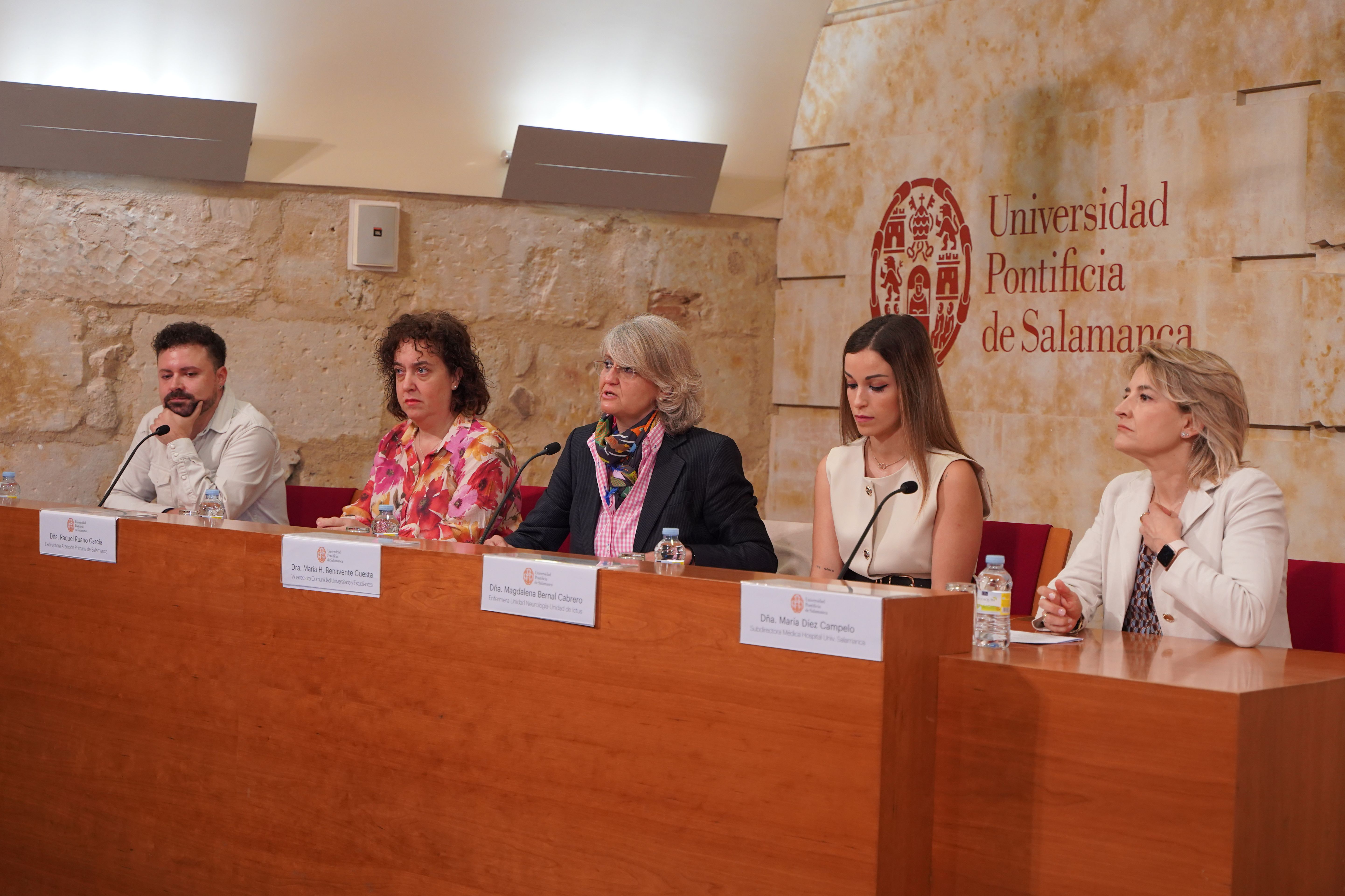 La Unidad de Igualdad de la Universidad Pontificia de Salamanca (UPSA) ha celebrado esta mañana una mesa redonda sobre el papel de la mujer en la salud. La mesa redonda ha estado presidida por la vicerrectora de Comunidad Universitaria y Estudiantes, María H. Benavente, acompañada por la subdirectora médica del Hospital Universitario de Salamanca y hematóloga, María Díez; la médica de Atención Primaria y exdirectora de Atención Primaria, Raquel Ruano; la enfermera de la Unidad de Neurología-Unidad Ictus, Magdalena Bernal, y el matrón del Hospital Universitario de Salamanca, Javier Sánchez.