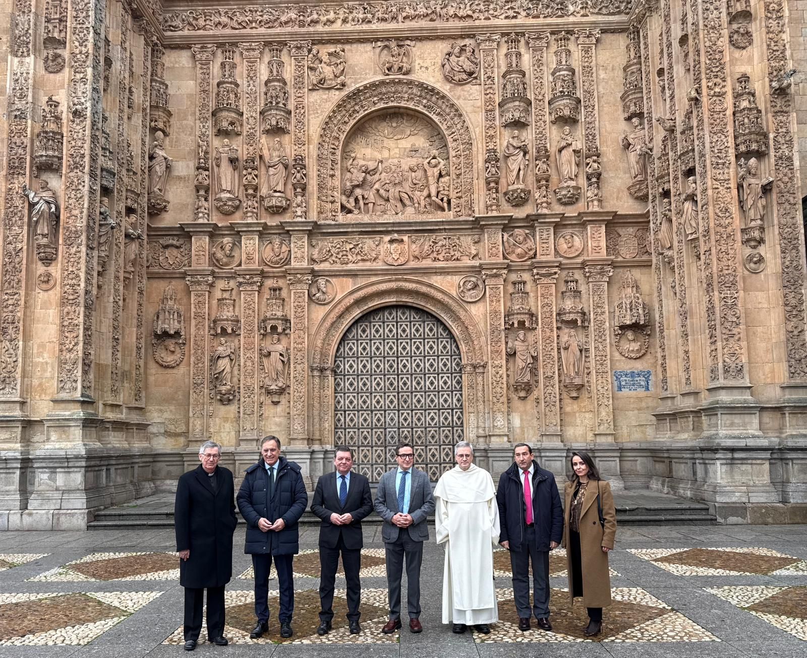La Universidad Pontificia de Salamanca, el Ayuntamiento de Salamanca, la Junta de Castilla y León, la Universidad de Salamanca (USAL) y la Orden de los Dominicos han rubricado hoy el protocolo para desarrollar en 2026 una serie de actos que conmemoren los 500 años de la Escuela de Salamanca, ya que en 1526 se produjo la incorporación de Francisco de Vitoria a la Universidad. Asimismo, se ha presentado la imagen promocional que acompañará la celebración de la efeméride. Además del Rector de la UPSA, han rubricado el protocolo el consejero de Presidencia, Luis Miguel González Gago; el alcalde de la capital, Carlos García Carbayo; el rector de la USAL, Juan Manuel Corchado; y el prior de los Dominicos en Salamanca, Manuel Ángel Martínez.