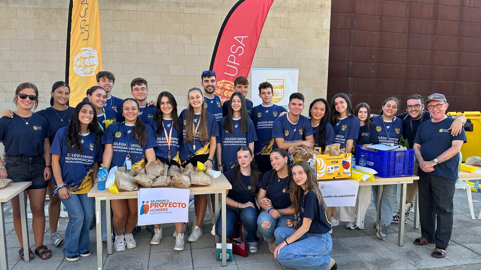 Una treintena de alumnos voluntarios de la UPSA colaboraron en la organización del evento, así como personal de administración y servicios de la Universidad. Además de ofrecer soporte y ayudar a los estudiantes de nuevo ingreso, todos dedicaron su esfuerzo a la organización con la logística y apoyo a los diferentes servicios de la Universidad. En este sentido, los colegiales del Colegio Mayor Hispanoamericano Nuestra Señora de Guadalupe fueron los encargados de preparar, vender y distribuir los bocadillos solidarios.