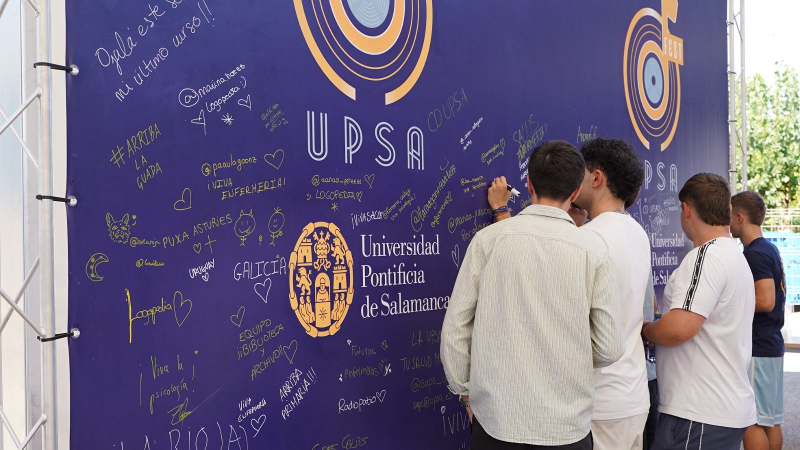 Unos 1.500 estudiantes de la Universidad Pontificia de Salamanca asisten a la II edición de 'UPSAFest', la jornada de bienvenida y acogida, organizada para los nuevos estudiantes, alumnos actuales y abierta a toda la comunidad universitaria. El evento tuvo lugar de 13:30 a 20:30 horas en el parking ubicado entre la Facultad de Comunicación y el Colegio Mayor Santa María y contó con la asistencia del Rector, Santiago García-Jalón de la Lama, el Equipo Rectoral, así como autoridades académicas.